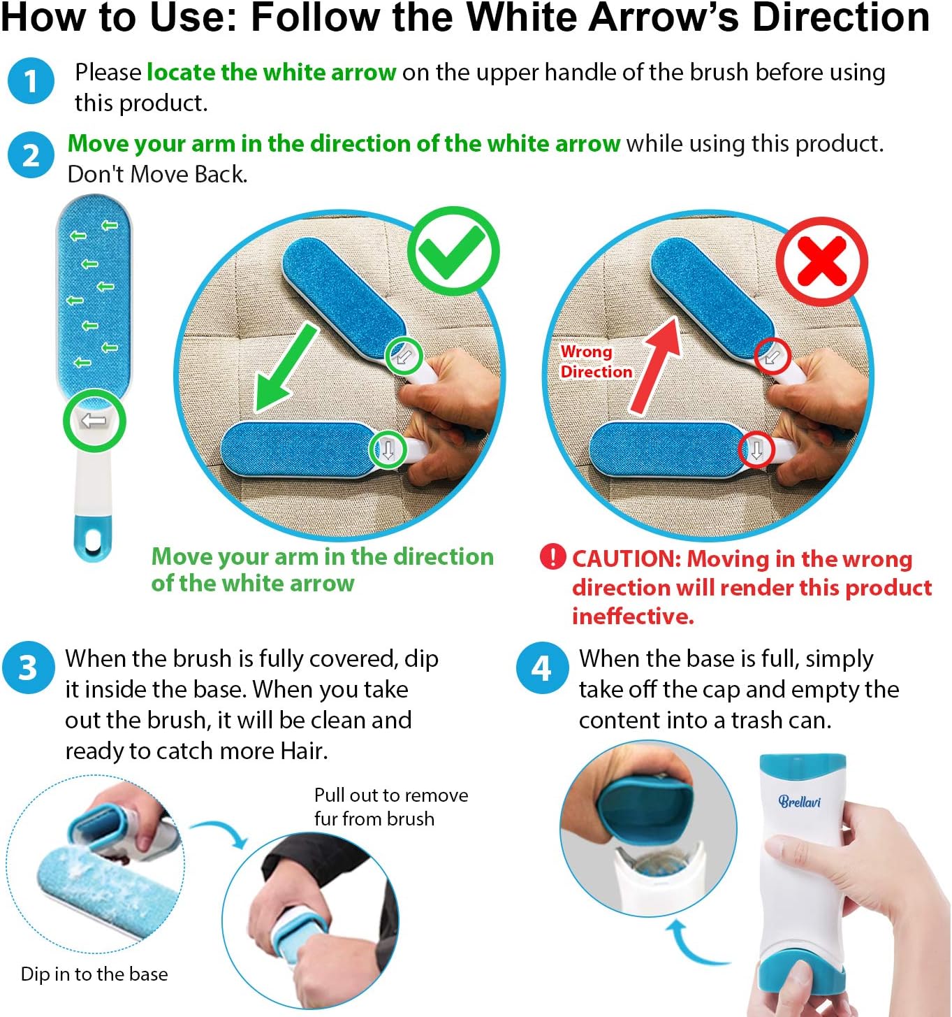- Portable, Self-Cleaning and Travel-Ready: Compact, lightweight, and easy to carry, our Pet Hair Remover is perfect for managing pet hair when traveling with your dog or cat, ensuring your pet's comfort and cleanliness. Available in two convenient sizes, it features a self-cleaning base for hassle-free hair removal. Simply follow the directional arrows for effective cleaning, and use the base to automatically remove lint and fur from the pet hair remover.