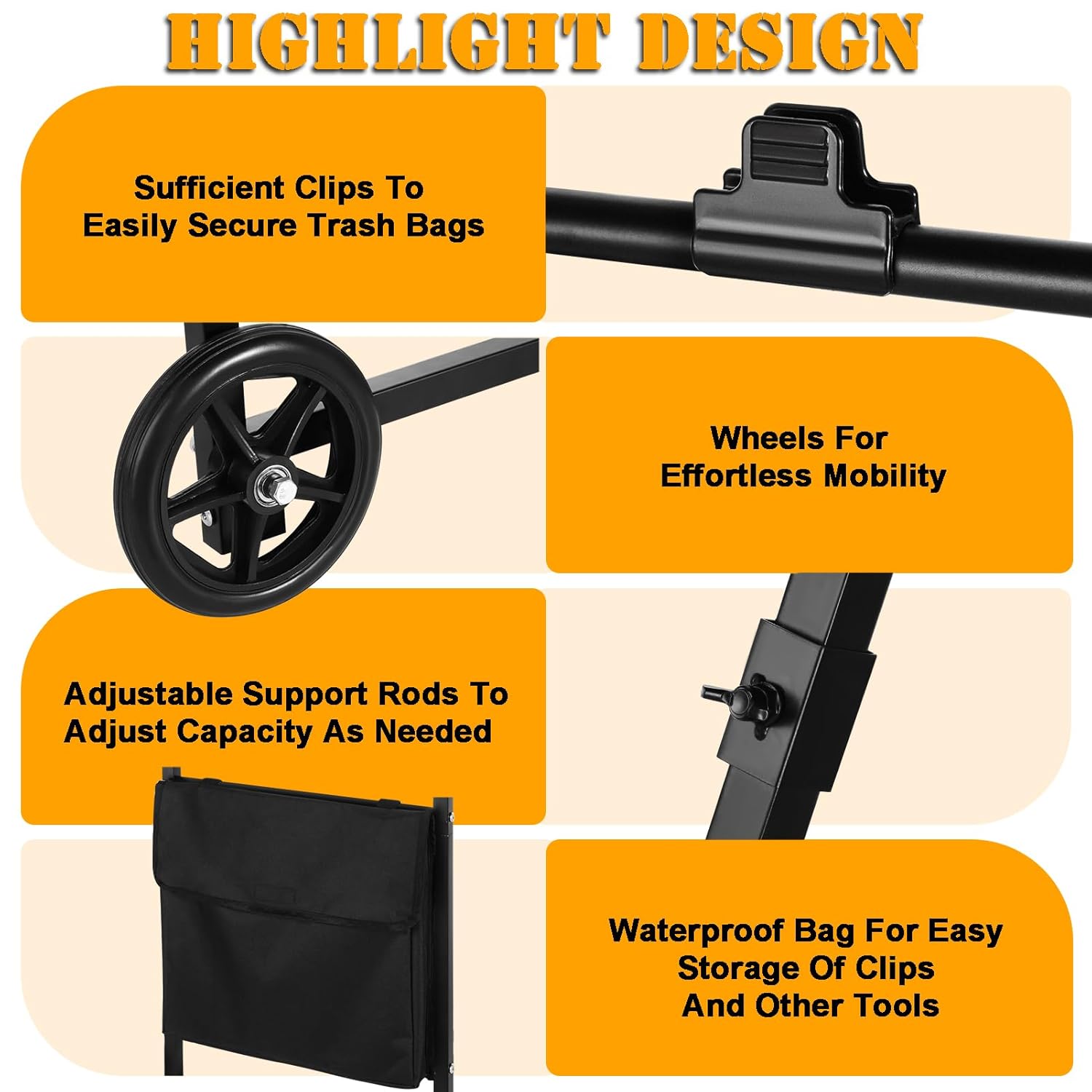 - Very Useful: The design of U-shaped handle is easy to put on and remove garbage bags from the frame.The leaf bag holder can keep the garbage bag open for easy disposal. We can dispose of the bags from the leaf bag holder simply after use and replace with new ones. It is perfect for any event such as parties, yard work, indoor storage and camping.