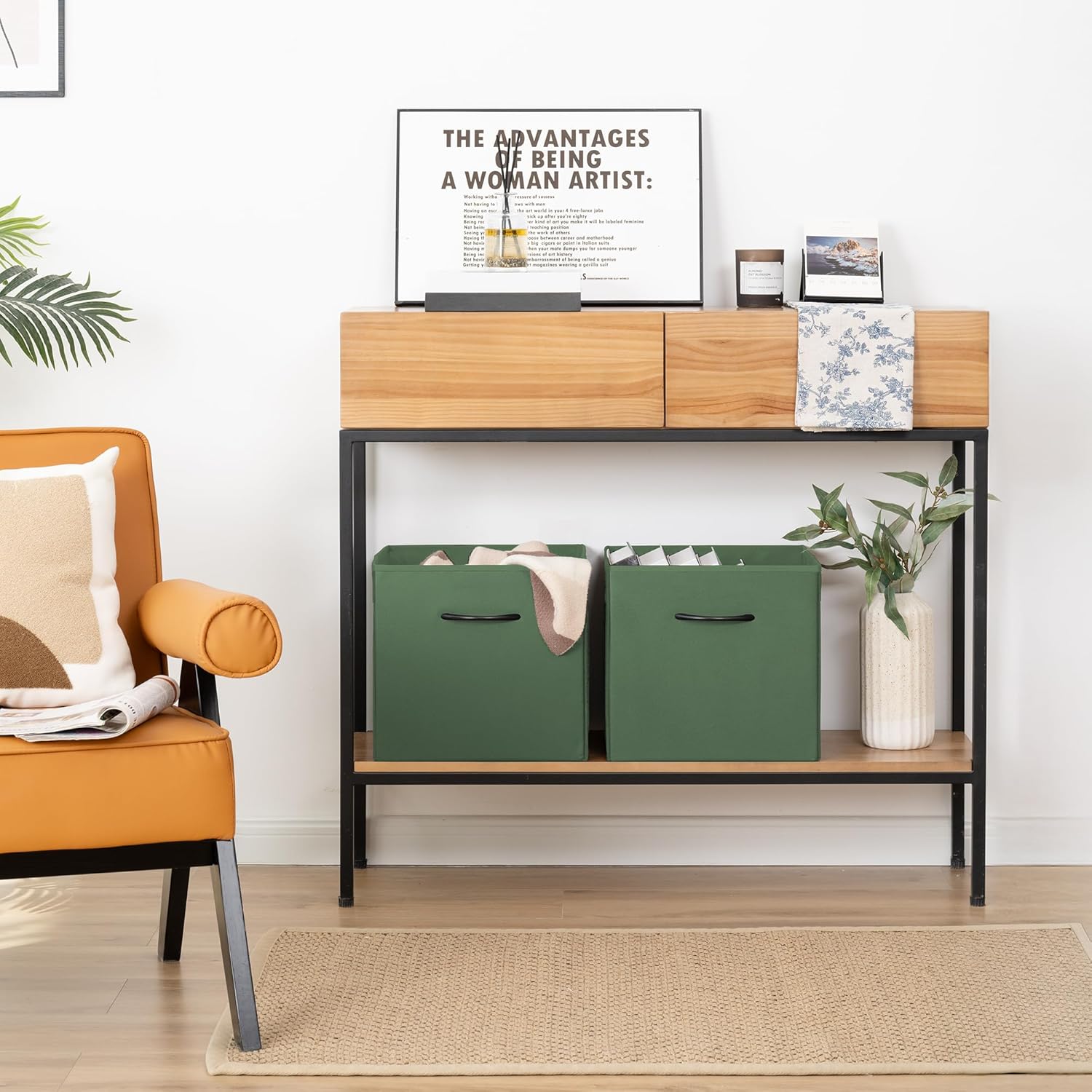 StorageWorks Green Storage Cubes, 13x13 Storage Cube Bins with Handle, Cube Storage Organizer Bins for Shelves and Closet, Collapsible Storage Bins, 4-Pack