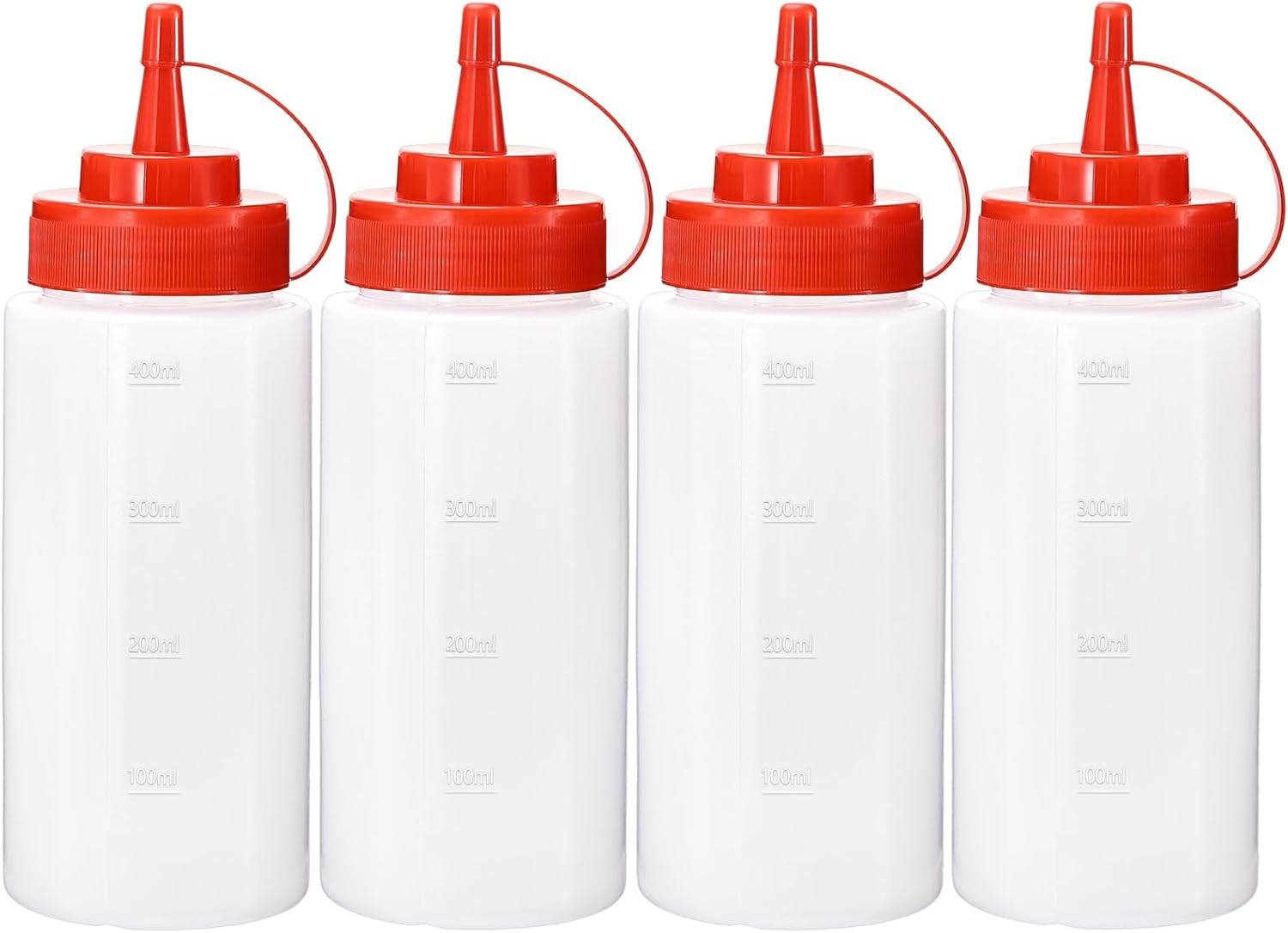• Direct Measurements: Ketchup dispenser has a standard 100ml - 200ml scale line. By translucence plastic sauce container, you can squeeze precisely and see the capacity.ments - Condiment bottle have a standard 100ml - 200ml scale line. By translucence plastic sauce container, you can squeeze precisely and see the capacity.