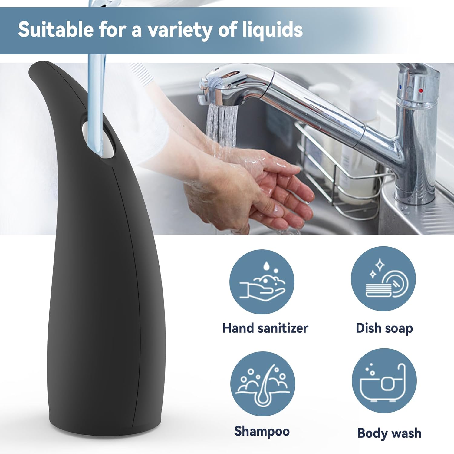 • 【Universal Liquid Compatibility】Works with any hand soap, dishwashing liquid