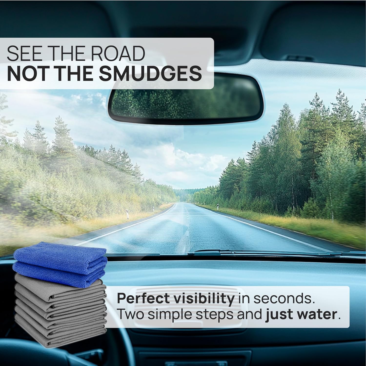 • 2-Step Streak-Free Clarity - Eliminate smudges, fog, and haze with Claro 2-cloth process: Use the damp blue cloth to remove grime, then follow up with the dry gray microfiber cleaning cloth for cars.