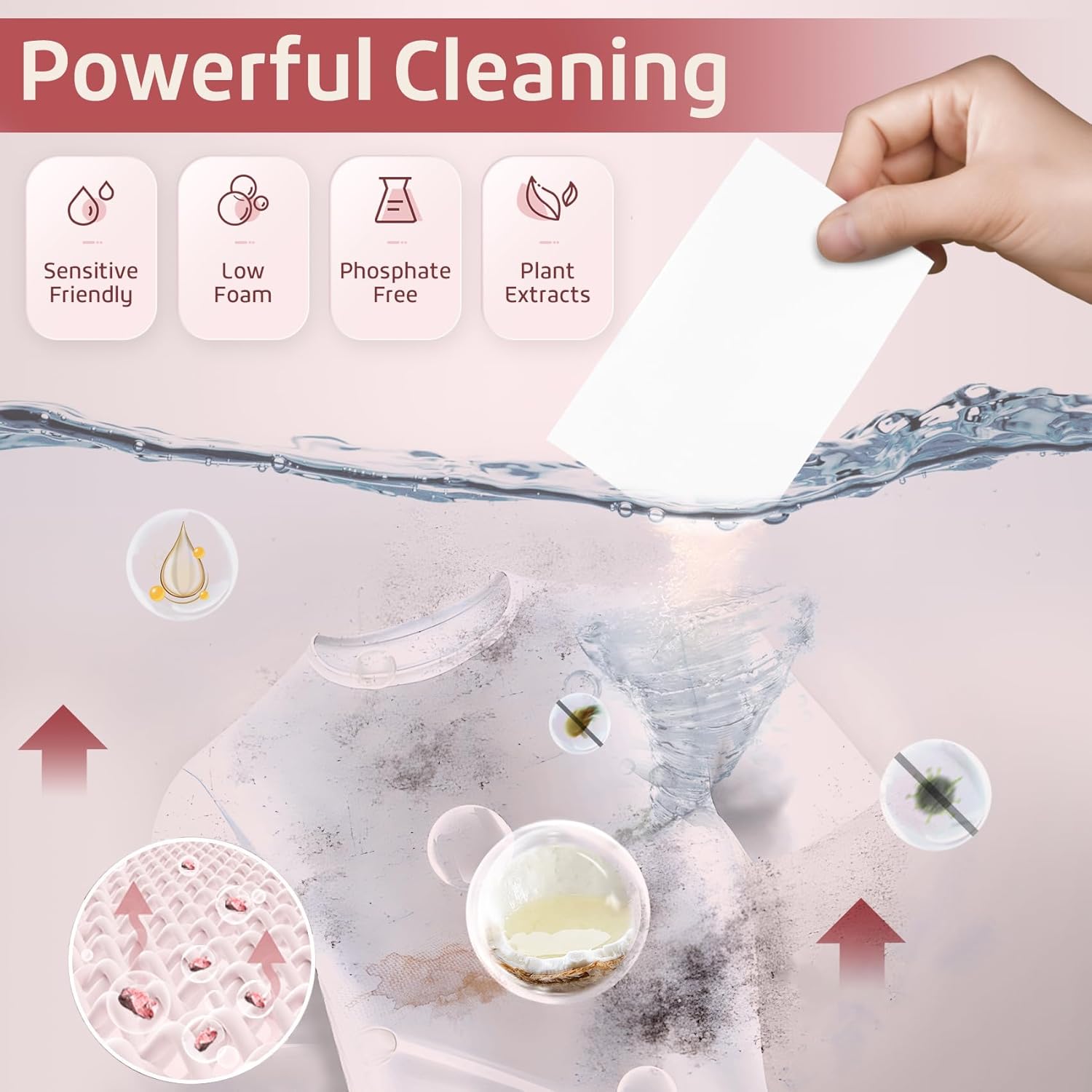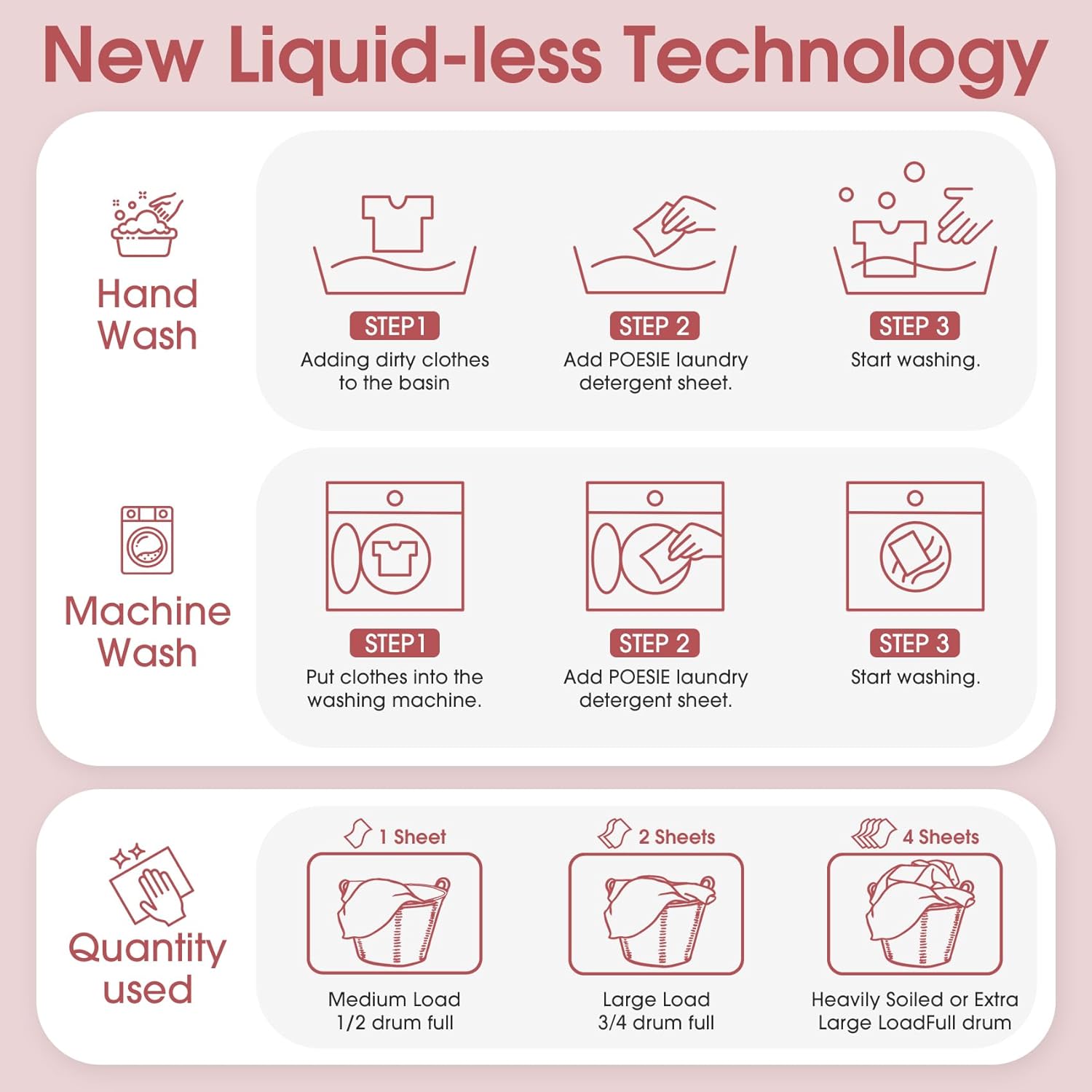 • Easy to Use - Liquidless detergent sheets, 1 sheet for small or medium loads where clothes are not very dirty, 2 sheets for large loads and 4 sheets for extra large loads, no waste. Not too little and not too much to save resources