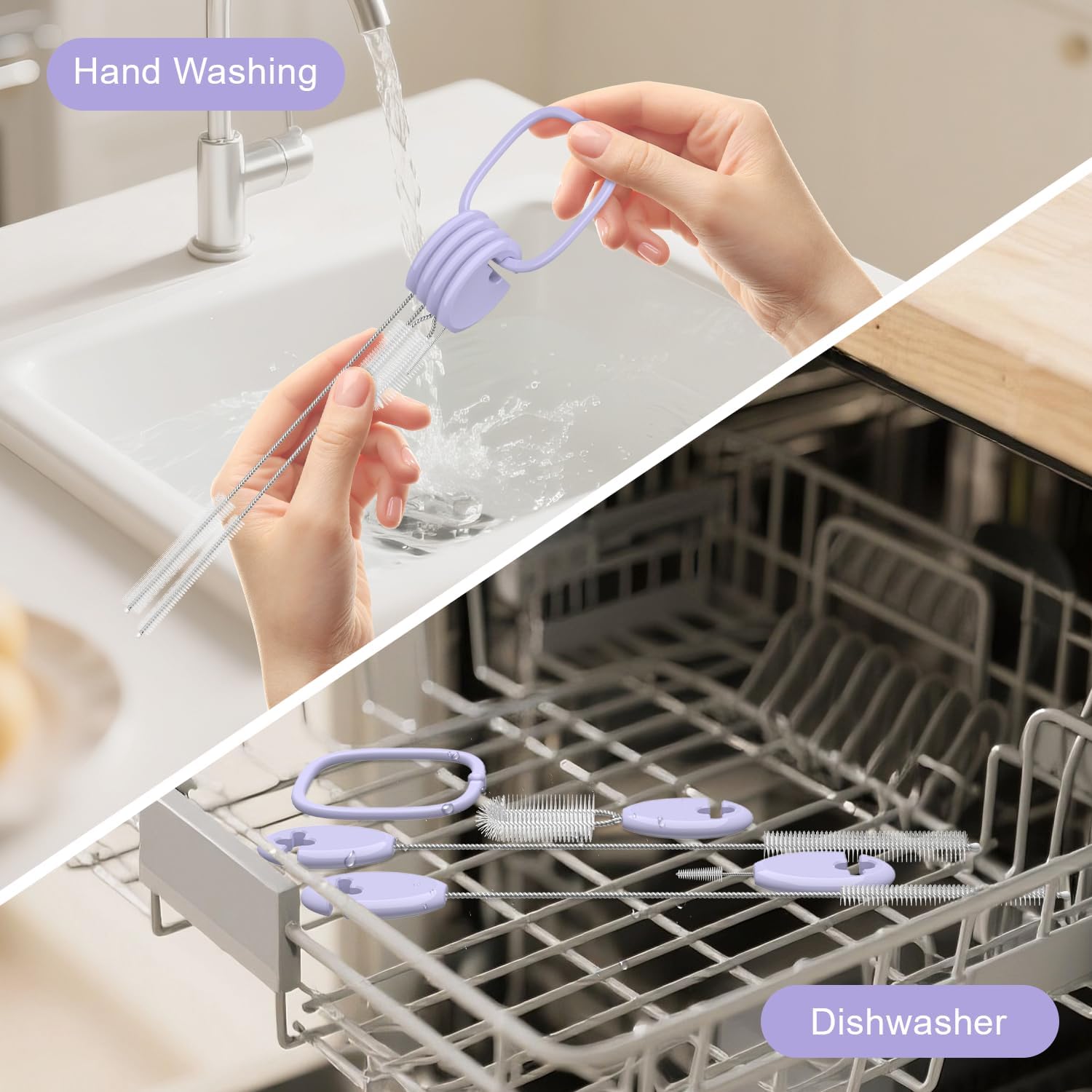 YOTIME Standing Straw Cleaner Brush Set, 4in1 Reusable Straw Brushes with Holder Ring, for Wide and Narrow Straws, Tumblers, Water Bottles and Cups, Purple