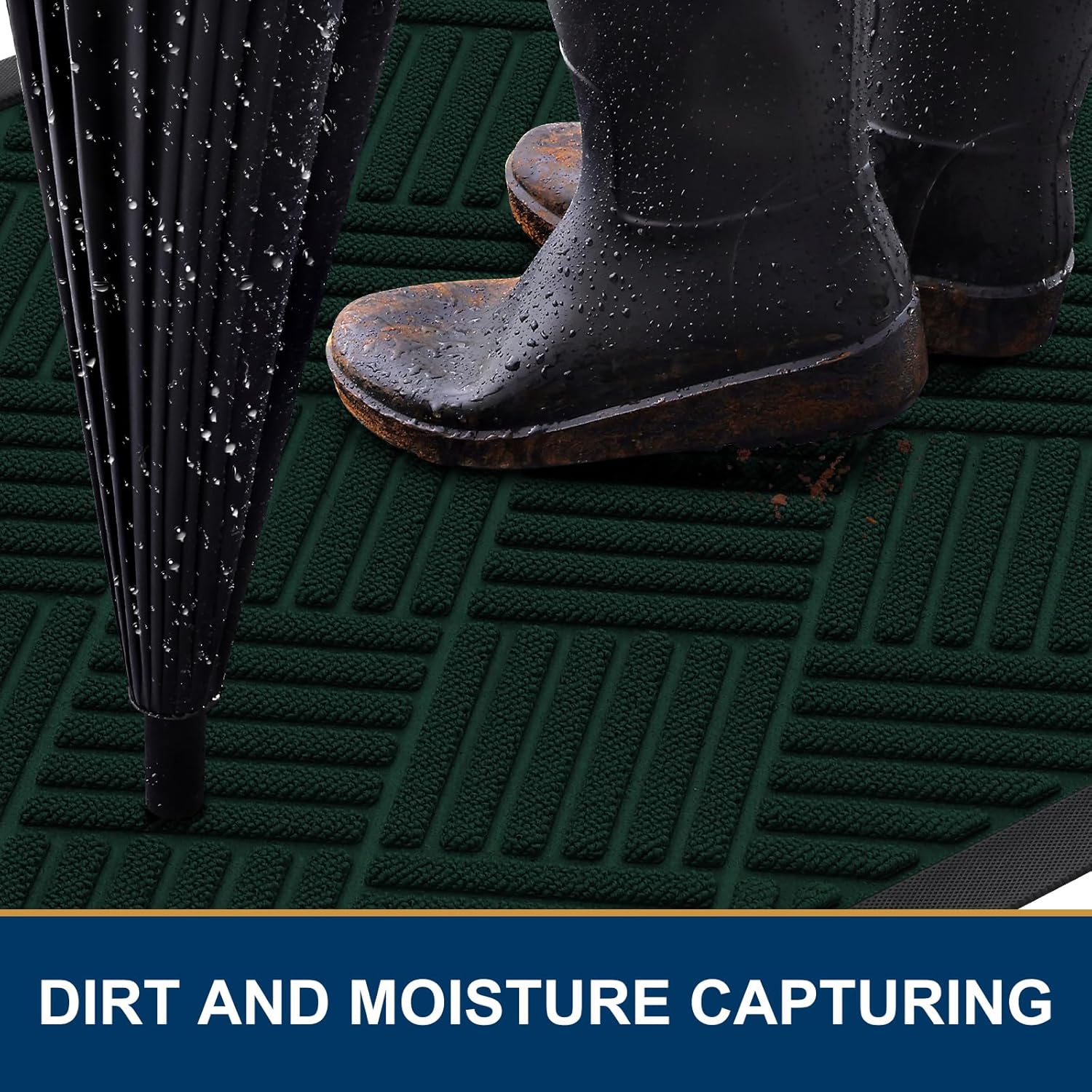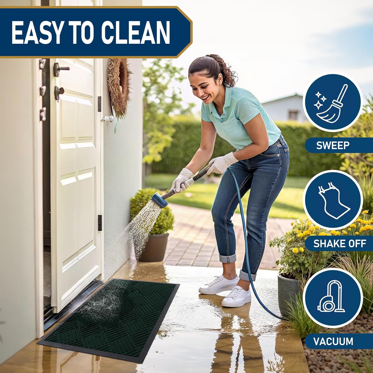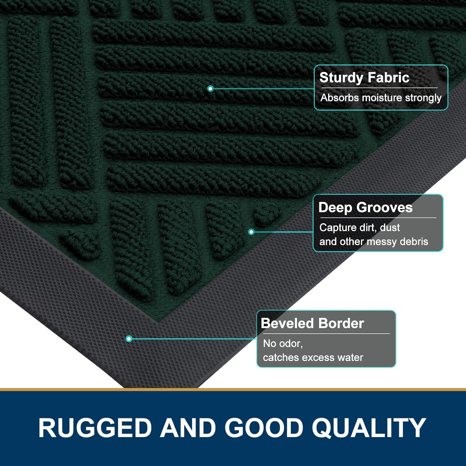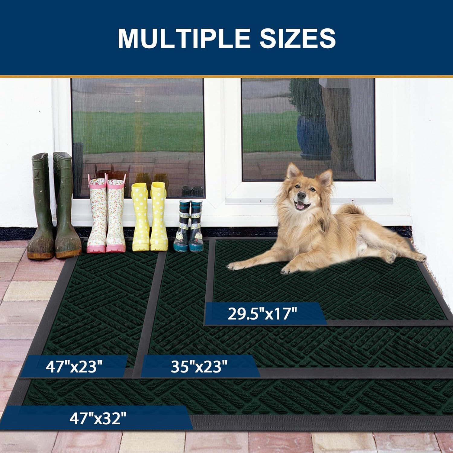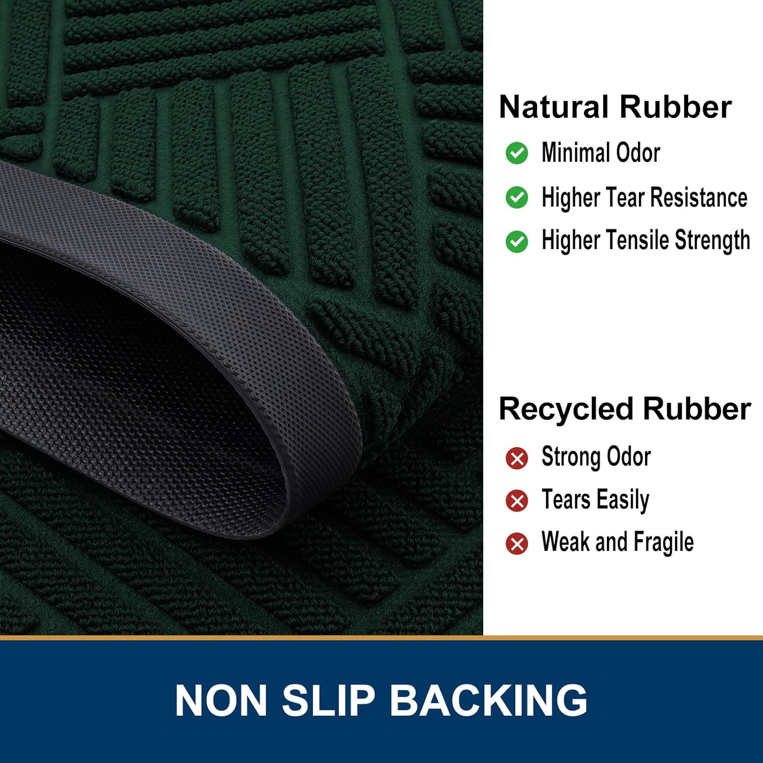 Smiry Front Door Mat Outside Entrance, Heavy Duty Outdoor Indoor Mat, Natural Rubber Doormat, Non Slip, Trap Dirt and Moisture, Easy Clean, Low Profile Patio Porch Entryway Mat, 29.5x17, Dark Green