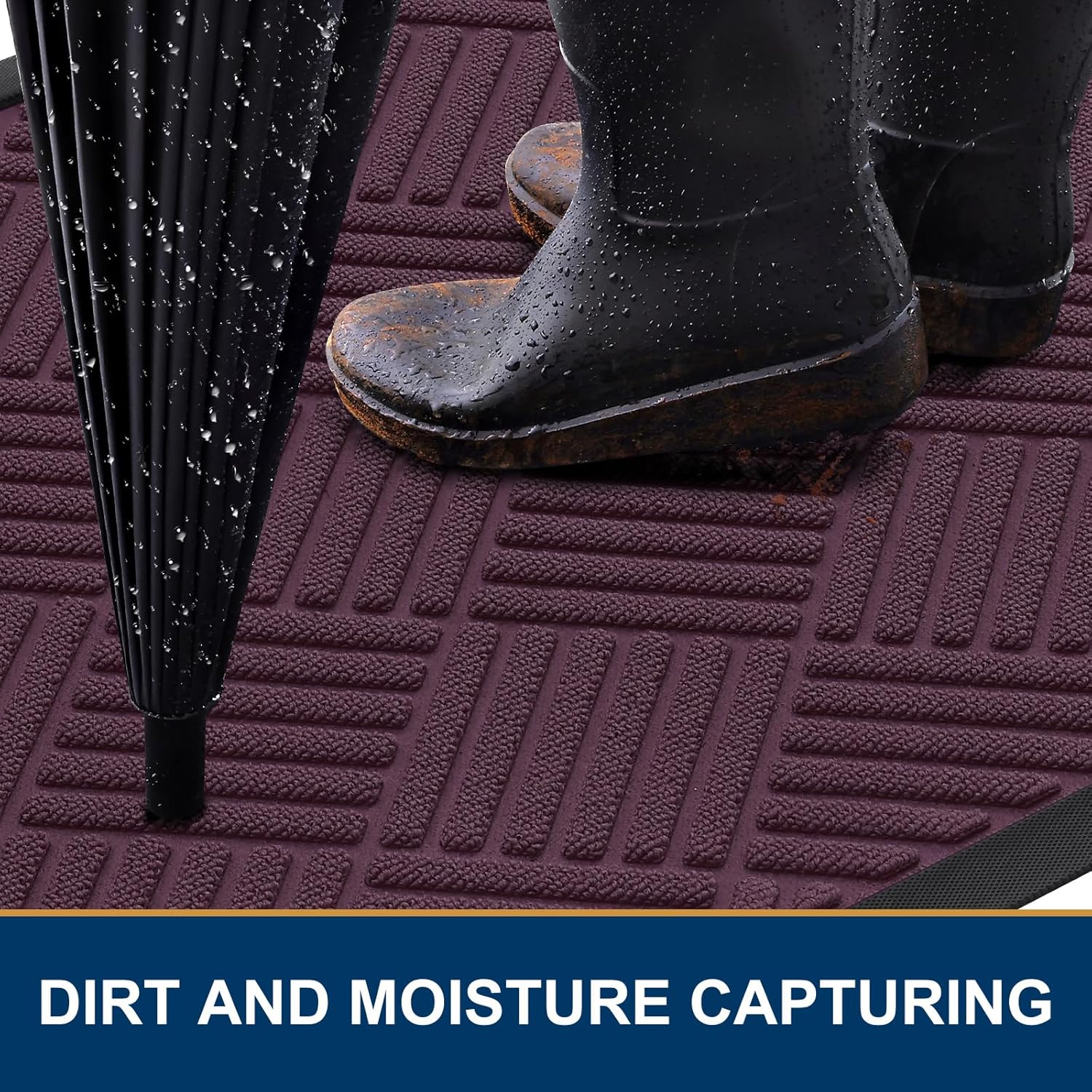 - Capture Dirt and Moisture: The surface of the Smiry door mat is crafted from woven polyester fabric. The deep grooves can effectively trap the dust, gravel, mud, sand and other clutter. The sturdy beveled rubber edge will not accumulate water. Even rainy, snowy or muddy weather will keep your home dry and clean