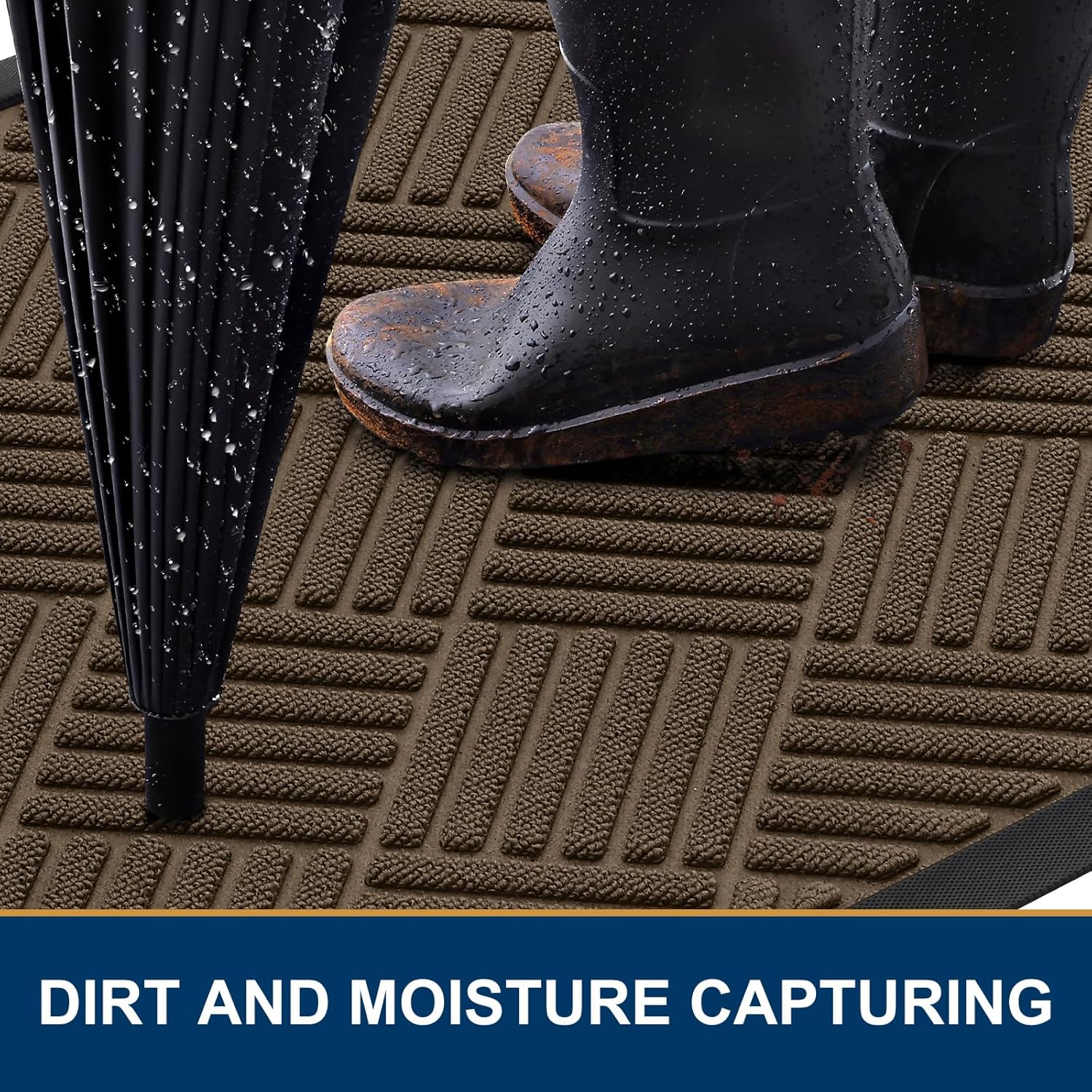 - Capture Dirt and Moisture: The surface of the Smiry door mat is crafted from woven polyester fabric. The deep grooves can effectively trap the dust, gravel, mud, sand and other clutter. The sturdy beveled rubber edge will not accumulate water. Even rainy, snowy or muddy weather will keep your home dry and clean