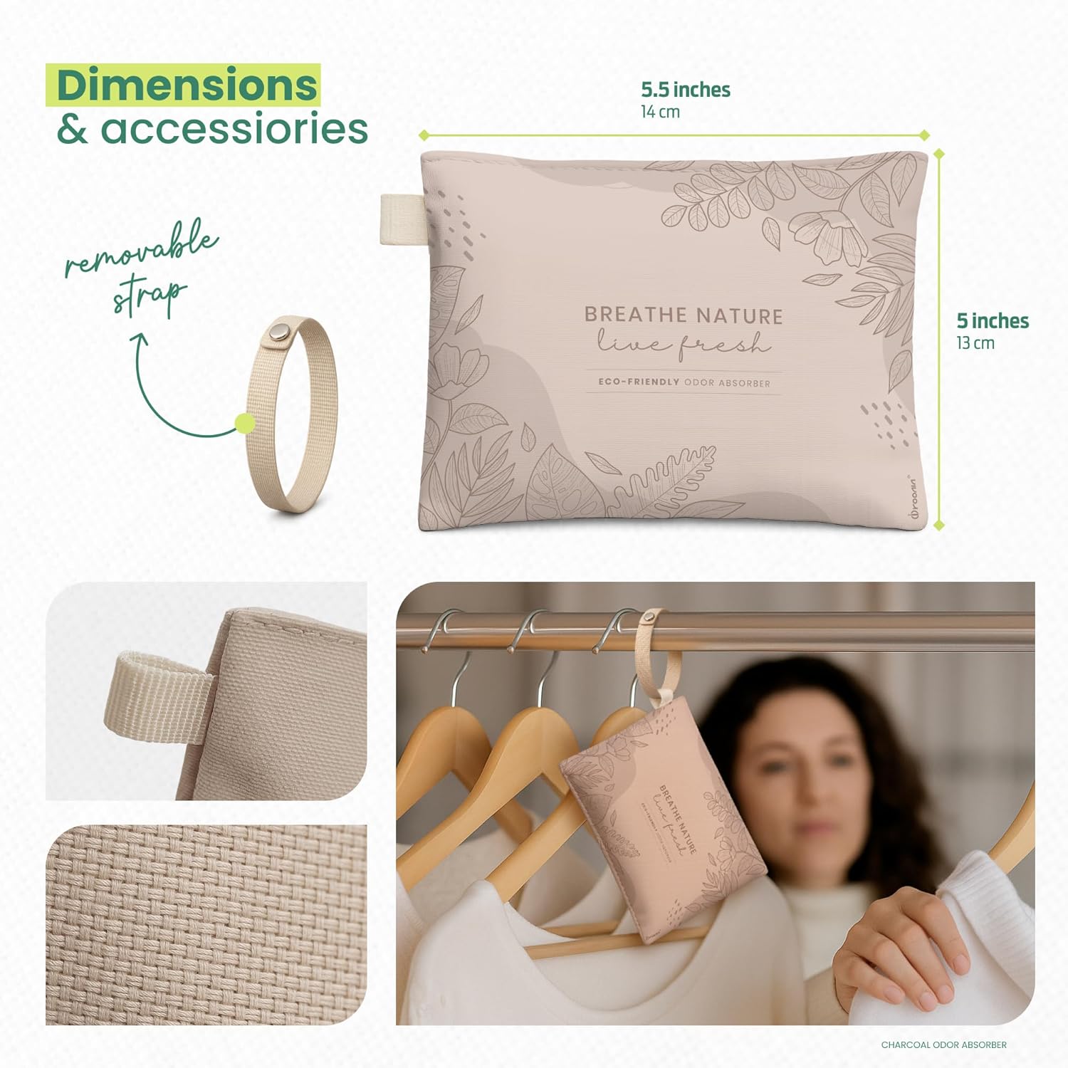 • STYLISH AIR PURIFIERS – with a minimalist, modern look, each bamboo charcoal air purifying bag features built-in hooks for easy hanging in closets or small spaces. This sleek odor absorber for strong odor works as an effective house smell eliminator, offering clean, mess-free freshness wherever it’s needed.