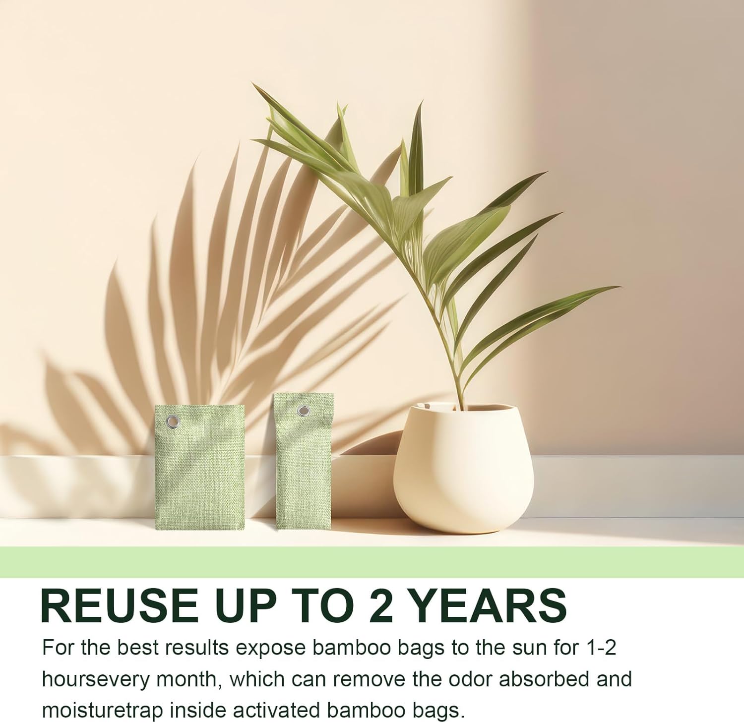 - 2 Years Continuous Fresh Air: revel in 17, 520 hours of natural deodorizer odor eliminator! A simple monthly sunbath recharges the bags, making them a cost-effective choice; Activated charcoal air purifiers for bedroom and drawer deodorizers are also available for any space that needs deodorizer, we recommend using multiple quantities for maximum deodorizing impact as smoke smell eliminator for home