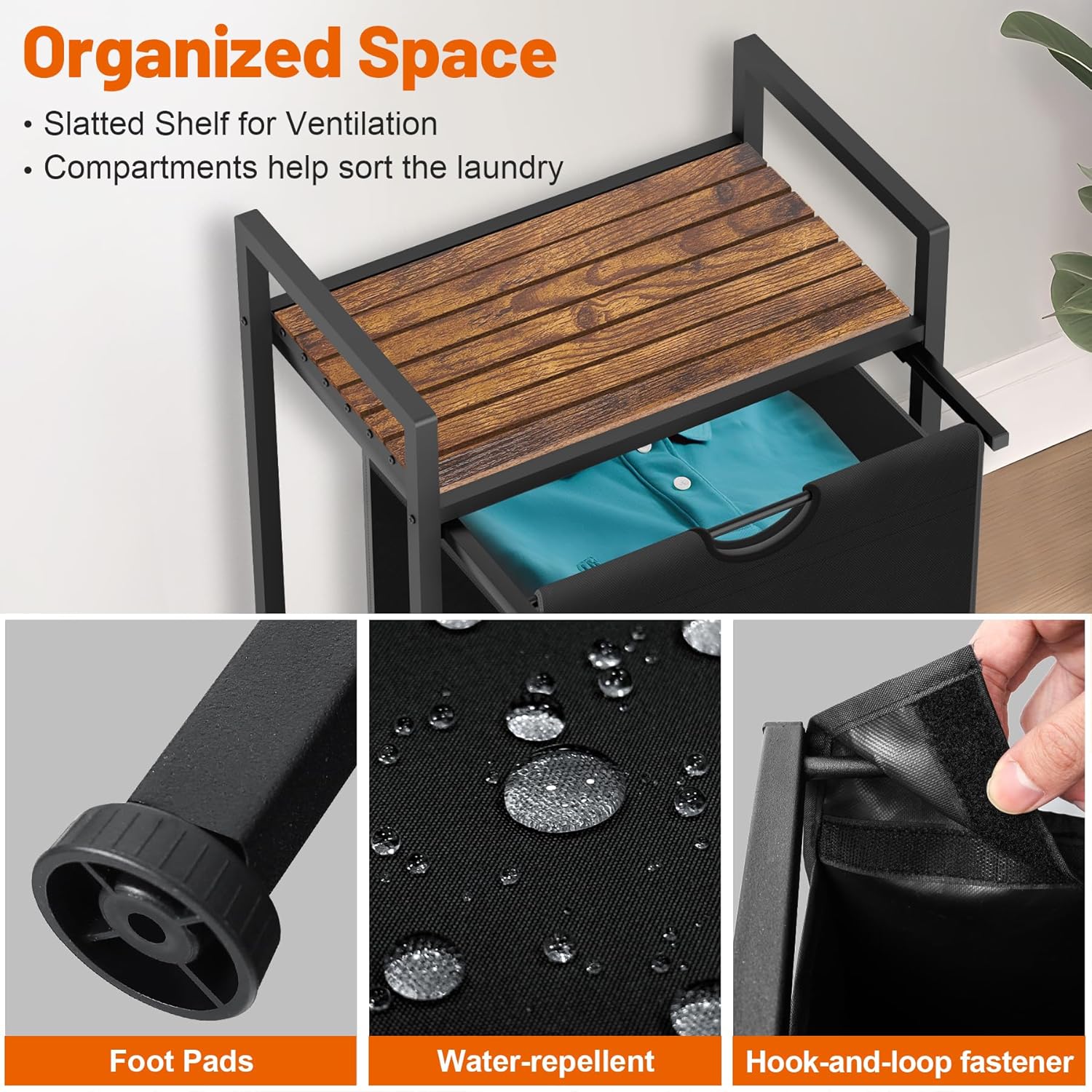 • Large Capacity - Featuring a 16 gallons capacity and an integrated open-shelf design, this laundry hamper helps you make the most of your storage space, easily accommodating both your clothes and accessories.