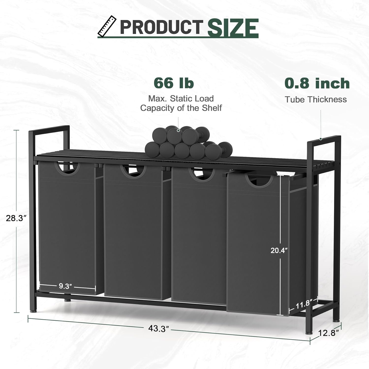 • Large Capacity - Featuring a 40 gallons capacity and an integrated open-shelf design, this laundry hamper helps you make the most of your storage space, easily accommodating both your clothes and accessories.