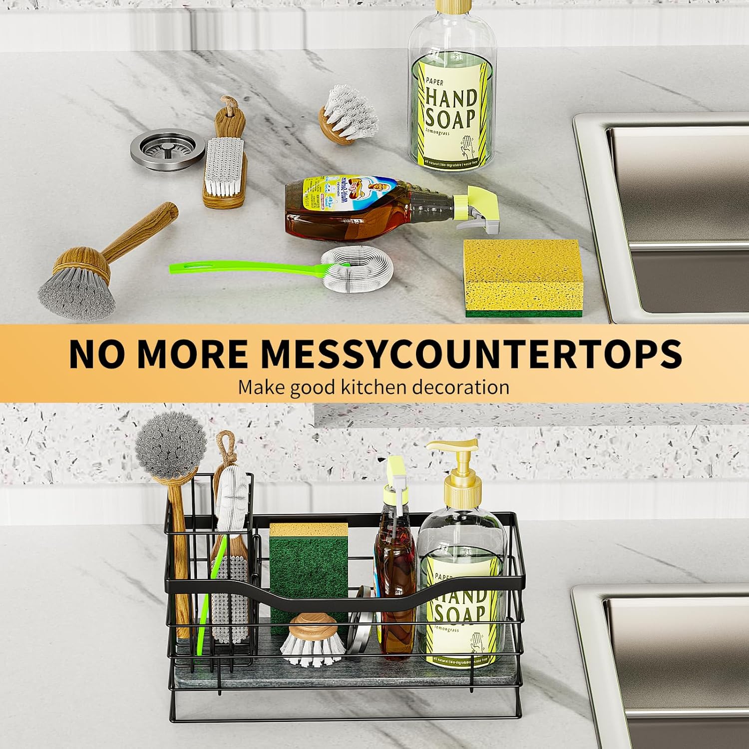 • Smart Drying Design Kitchen Sink Caddy– Elevated slots + drip tray stone accelerate drying ,no more smelly kitchen sponge holder for sink.