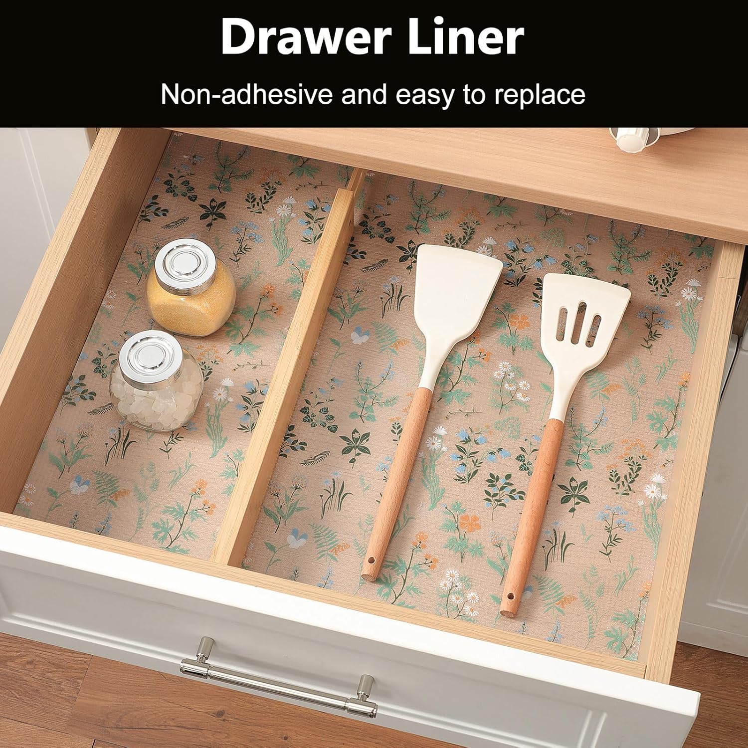 - AESTHETIC & PRACTICAL: This shelf liner perfectly combines practicality and artistry—a transparent base paired with a floral pattern design retains its multifunctionality while instantly infusing storage spaces such as shelves, cabinets, and drawers with a fresh aesthetic, breathing artistic vitality into everyday organization.
