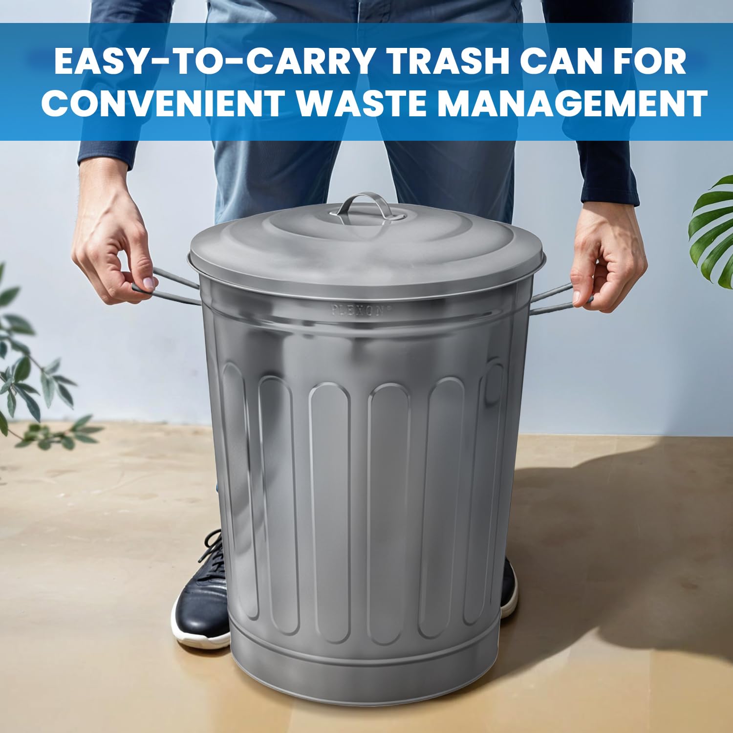• Durable Construction: Made from high-quality galvanized steel, this trash can is built to withstand harsh weather conditions and heavy-duty use, ensuring long-lasting durability.