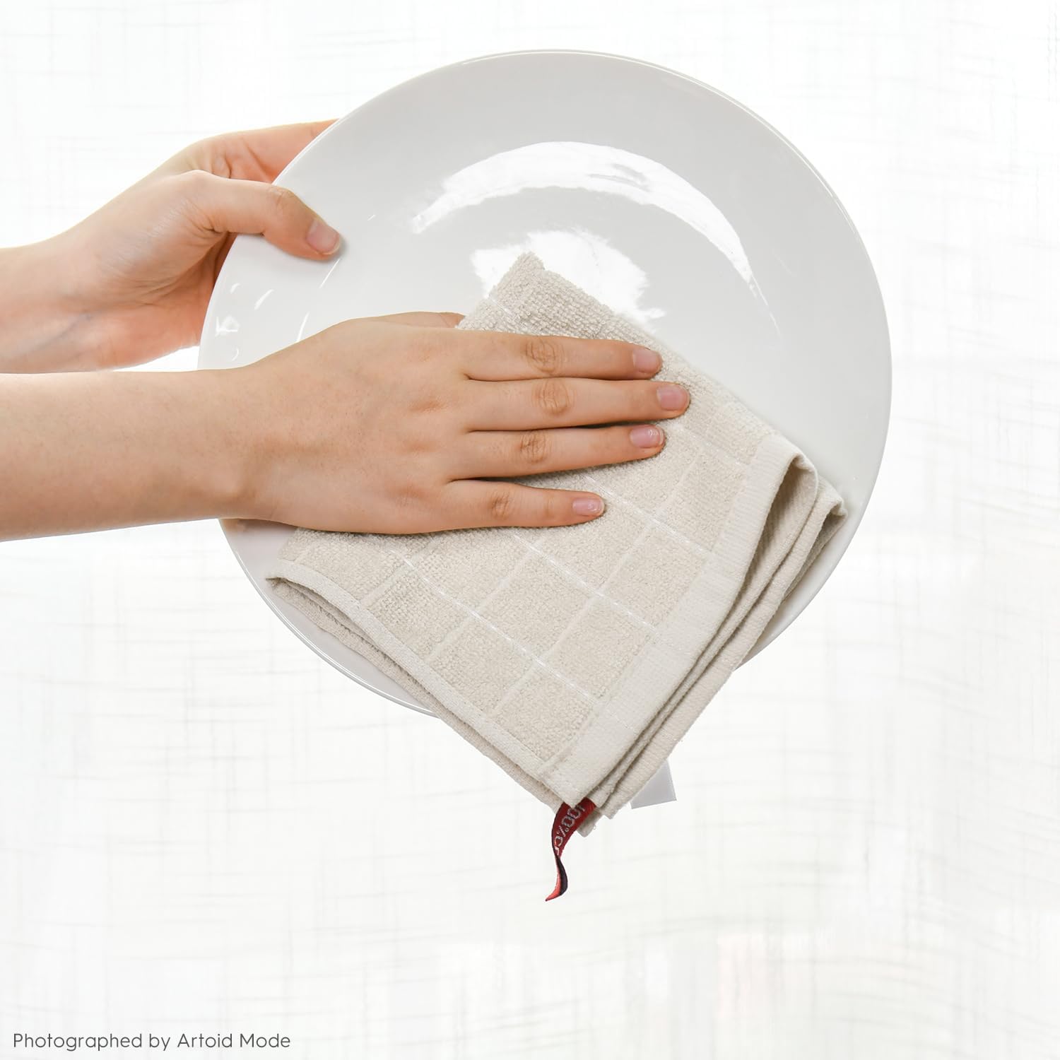 Artoid Mode Checkered Designed Cotton Beige Grey Terry Kitchen Dish Cloths, 12x12 Inch Soft Absorbent Quick Drying Cleaning Kitchen Rags Set of 6