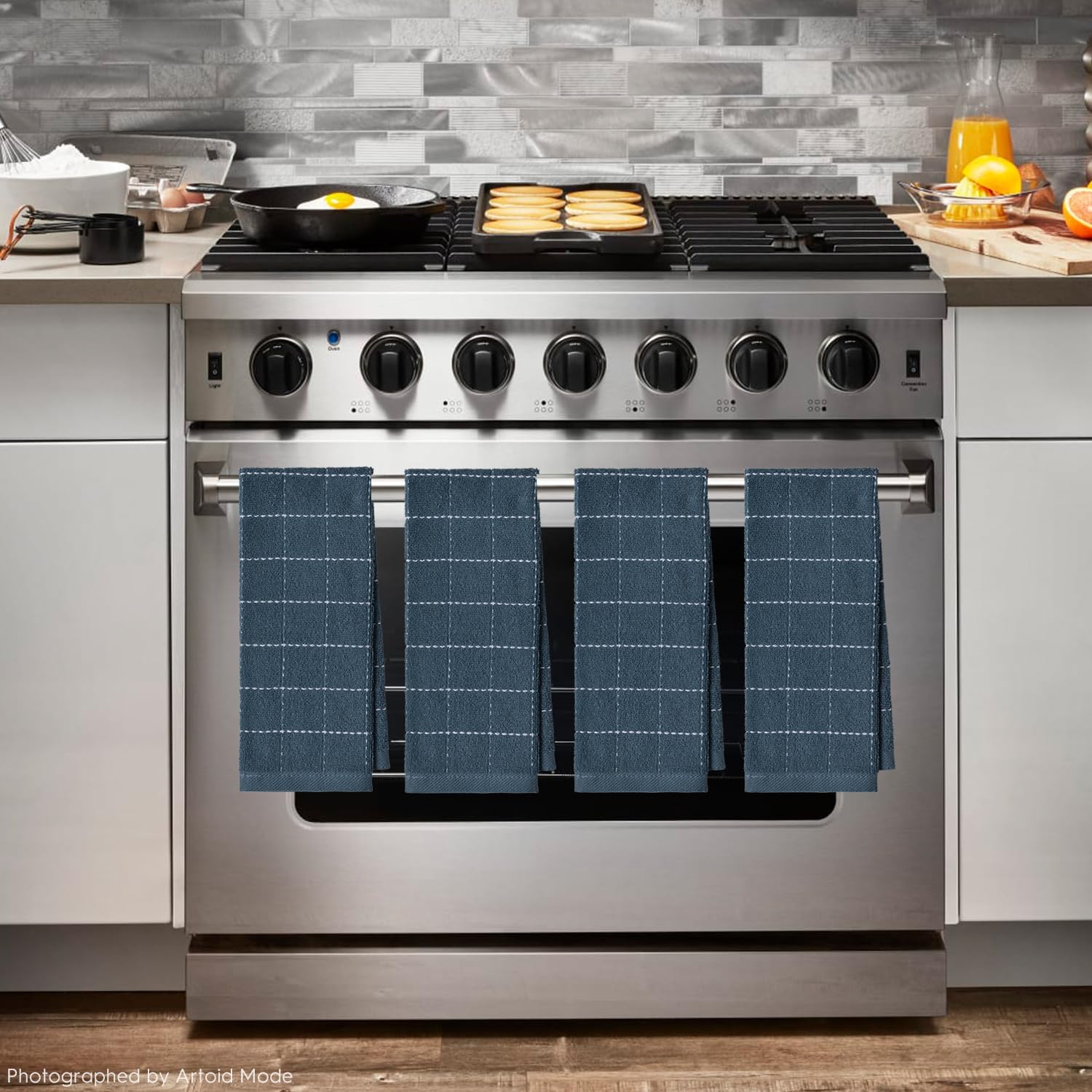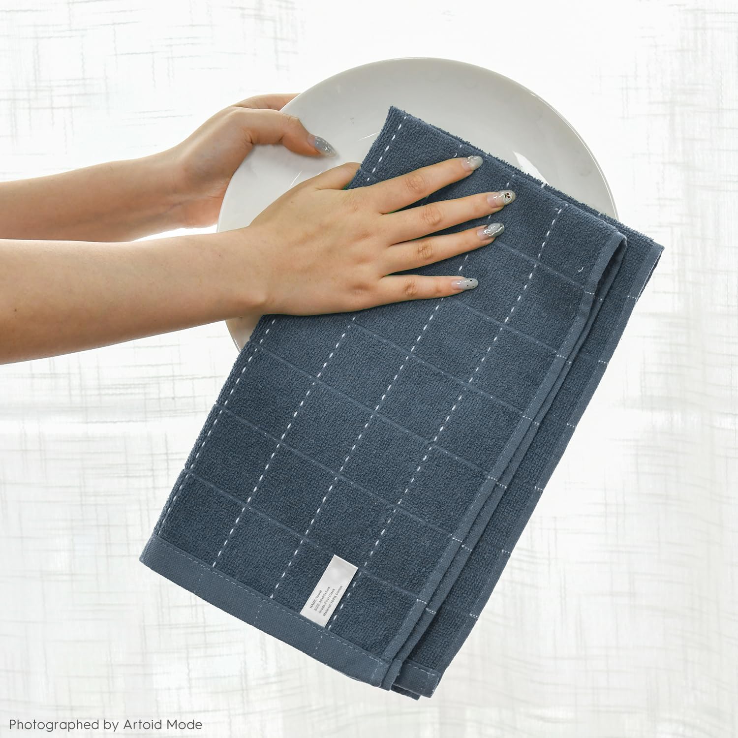 Artoid Mode Checkered Designed Cotton Grey Terry Kitchen Dish Towels, 15x25 Inch Soft Absorbent Quick Drying Family Cleaning Tea Towels Set of 4