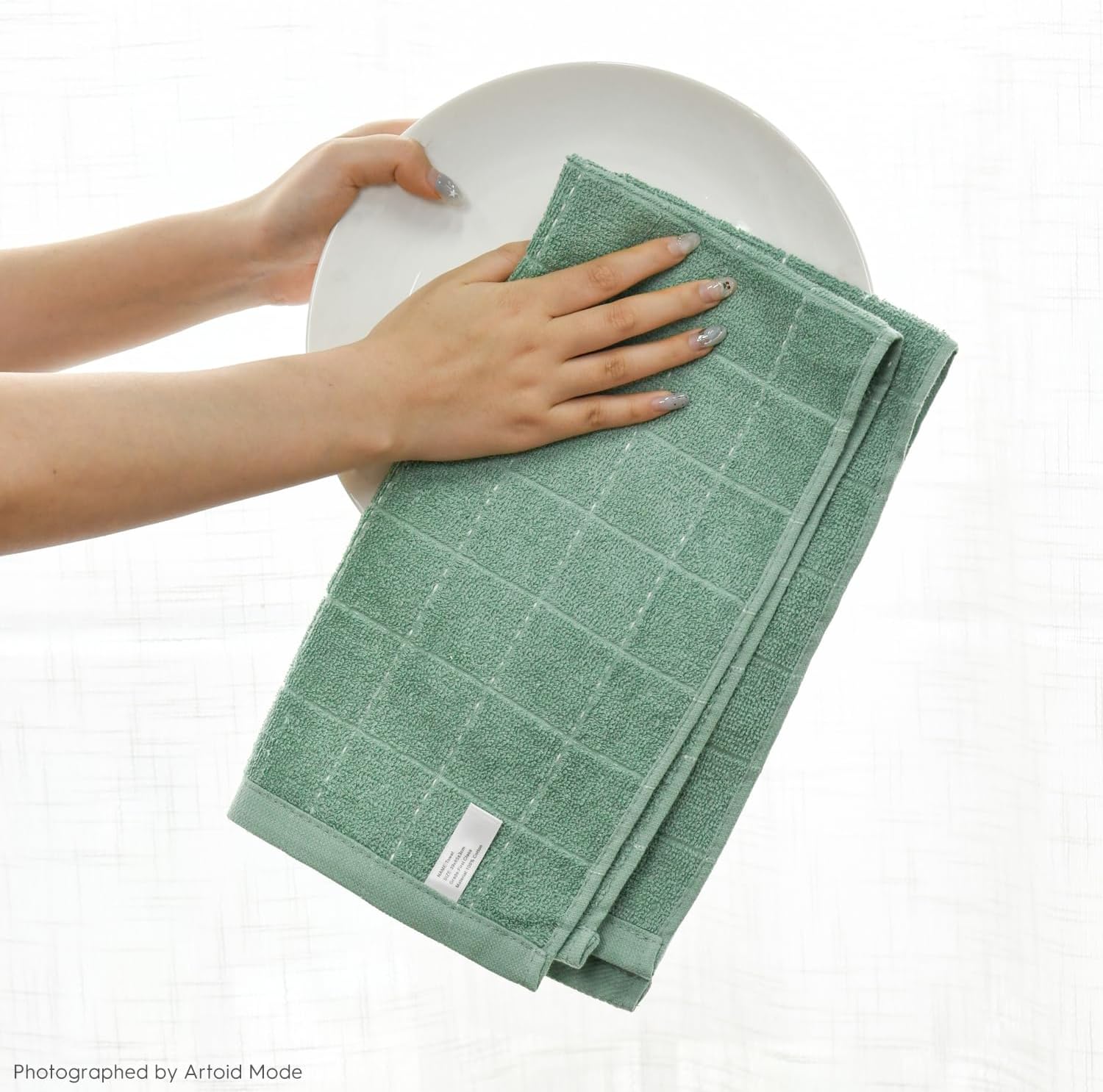 Artoid Mode Checkered Designed Cotton Dark Green Terry Kitchen Dish Towels, 15x25 Inch Soft Absorbent Quick Drying Cleaning Tea Towels Set of 4