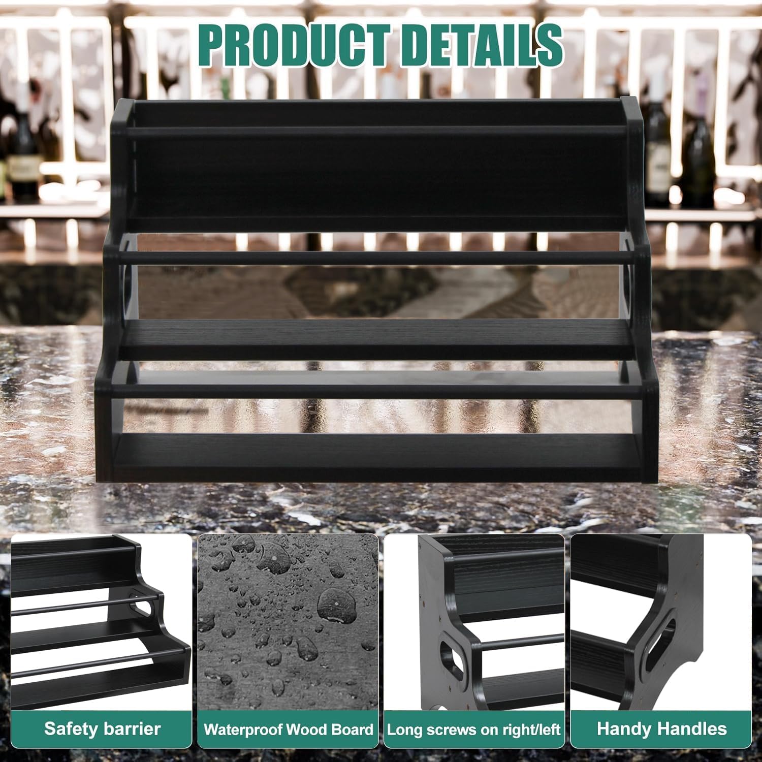 - [Durable Iron & MDF Construction]Crafted from sturdy iron frames and MDF shelves, this spice rack offers long-lasting durability. The robust build supports heavy bottles without wobbling, ensuring stability and resistance to daily wear, ideal for busy kitchens.