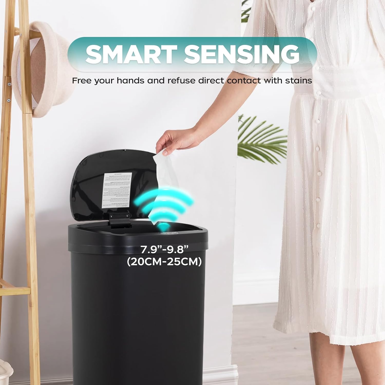 • Touchless Convenience: Experience the ultimate in hygiene with our Automatic Motion Sensor Bathroom Trash Can. Easily open the 13 Gallon Touchless Trash Bin using knee or hand gestures, eliminating contact and maintaining cleanliness in your home.