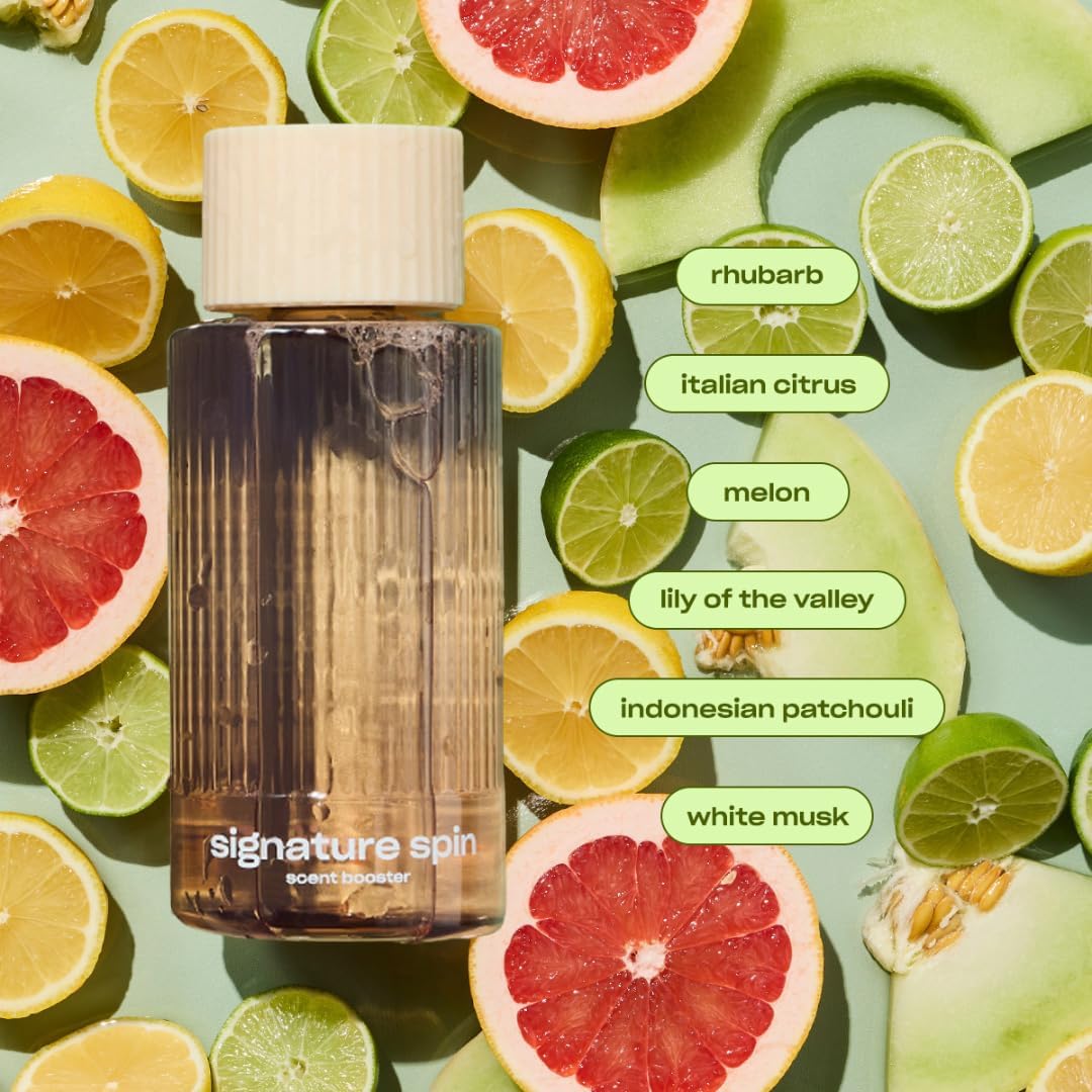 • SIGNATURE SPIN: A classic scent with modern cleaning power. The Everything Wash detergent removes dirt, stains, and odors, while the scent of Signature Spin keeps it fresh with dewy melon, zesty Italian citrus, tart rhubarb and classic white musk. Whether it’s a quick load or a heavy duty wash, this scent will make it feel timeless.