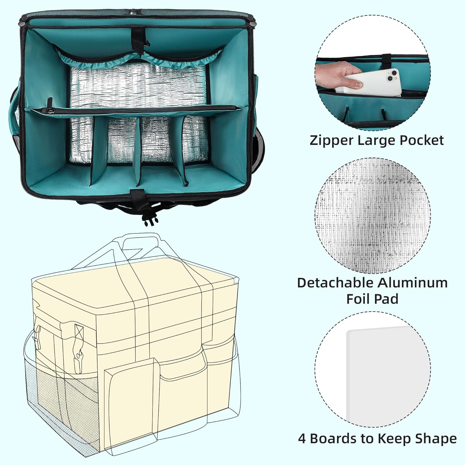 Rolling Cleaning Caddy Bag with Wheels, Large Cleaning Cart Detachable Trolley, Cleaning Bags for Housekeepers With Shoulder Strap & Multi Pockets for Cleaning Tools Storage (Amber Green)