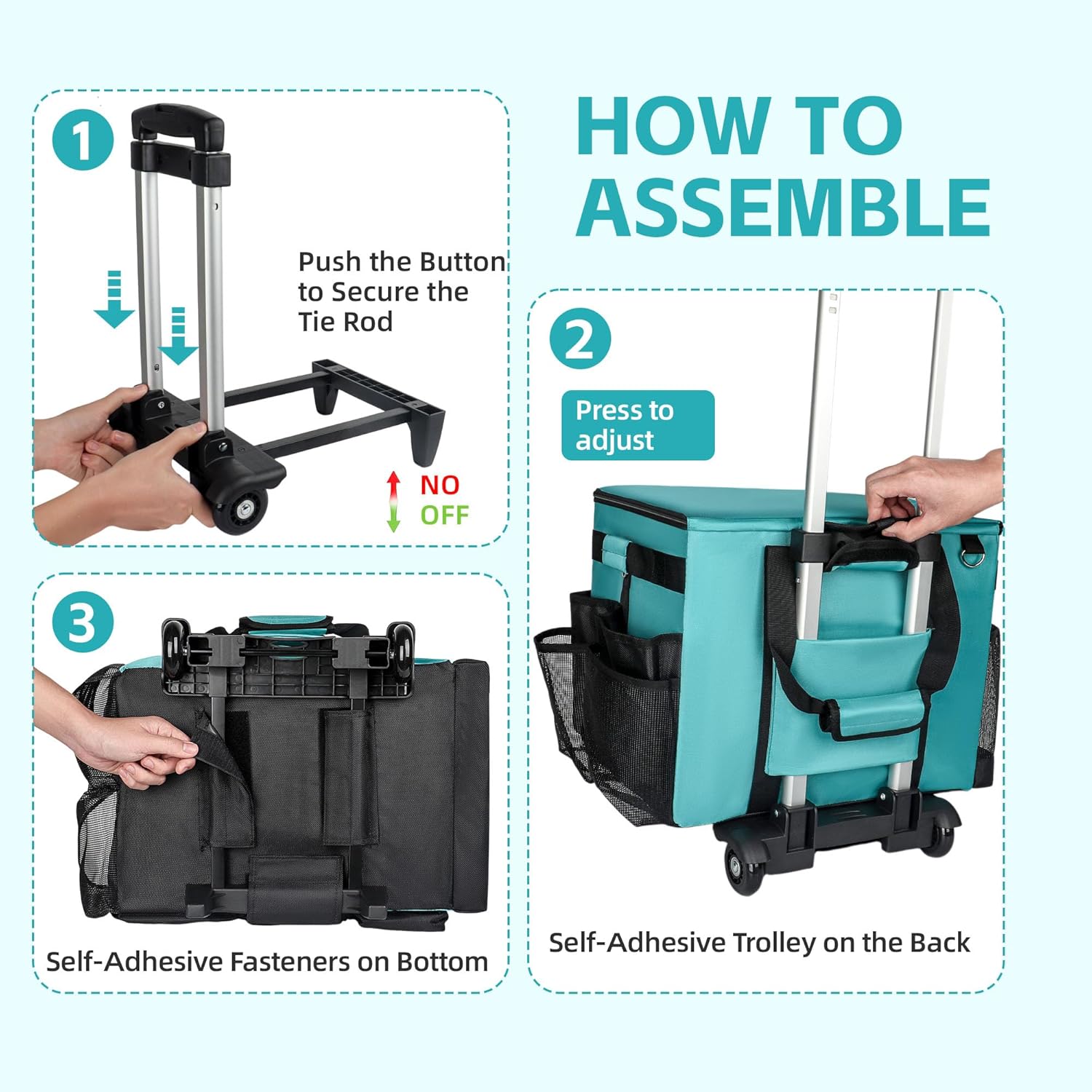 • Detachable and Foldable Trolley: Rolling cleaning caddy bag trolley features a retractable, stable handle with a cart height of 35.8in, Multiple Velcro straps secure the cleaning bag to the trolley to prevent tipping during use