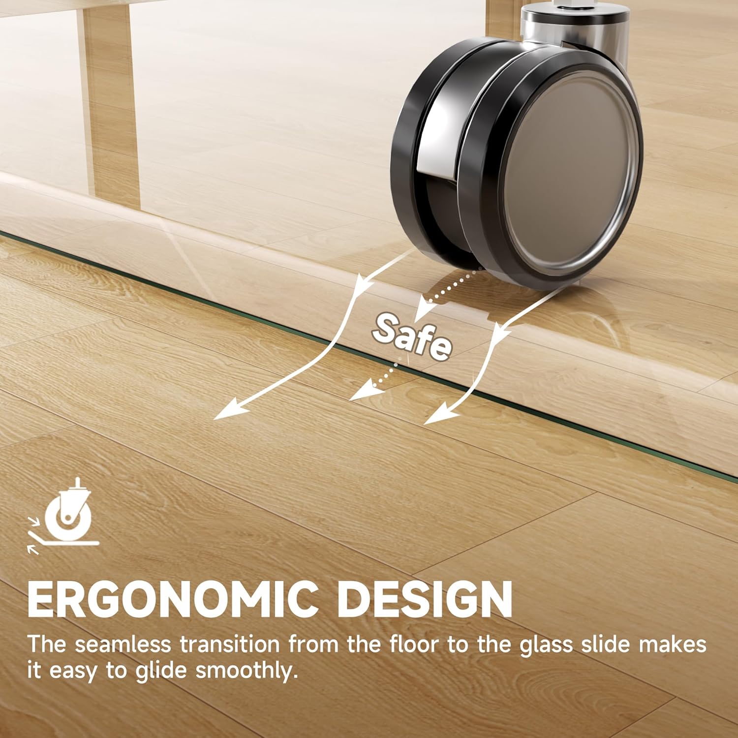 - [πππππ₯ππ¬ ππππππ ππππππππ] The stylish tempered glass chair mat has a maximum weight capacity of 1,000 lbs, ensuring that your floors are protected from the scuffs and damage typically caused by hard plastic rolling office chair wheels. This elegant ergonomic tempered glass mat is easy to use on both carpet and hard floors such as tile, wood and vinyl