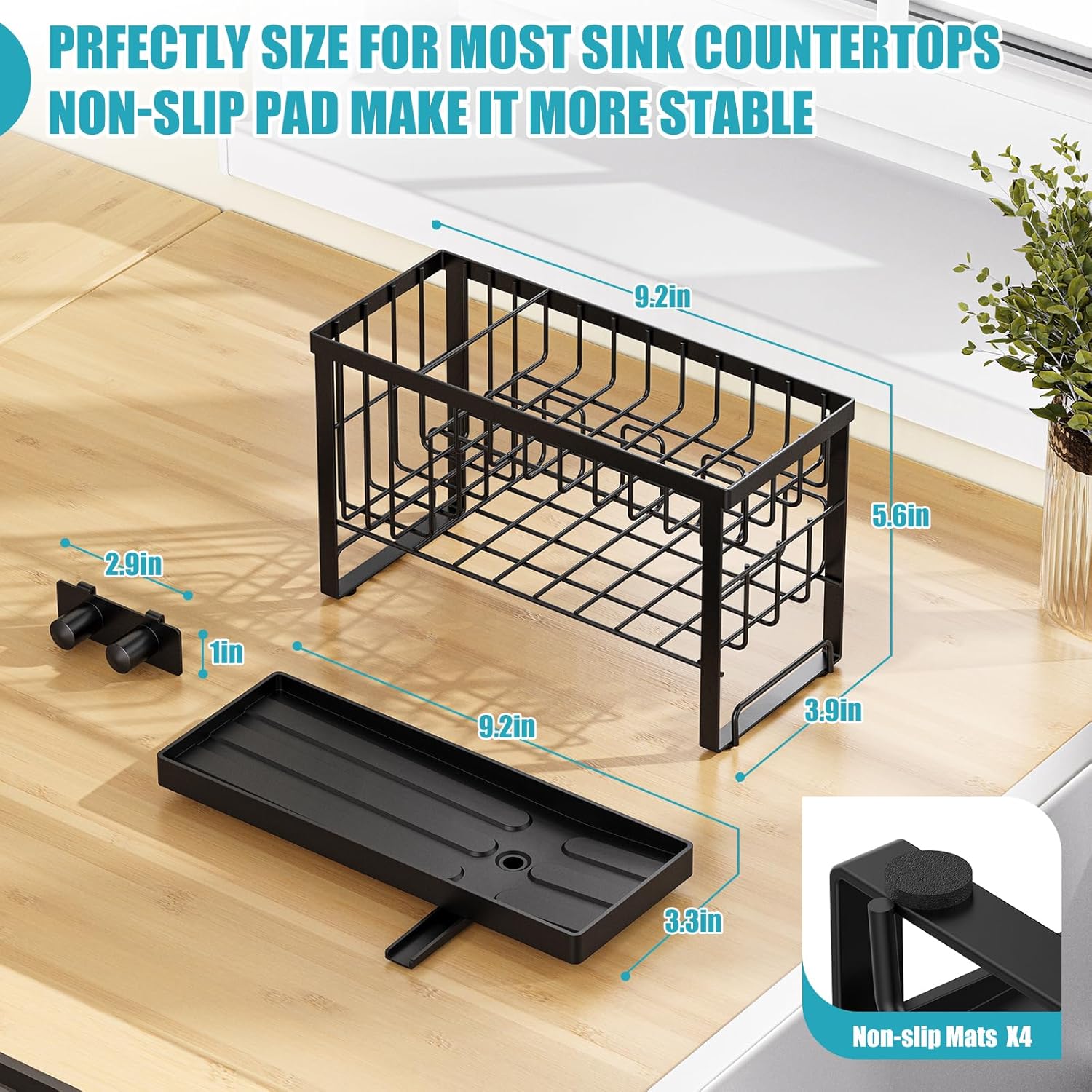 - 4 ANTI-SLIP MAT: The upgraded kitchen sink organizer has added non-slip mat on its underside and lstays firmly in place on countertops to prevent shifting or sliding.It can be used in a variety of kitchen environments without the worry of slipping or tipping.No installation required and is widely used on counters or bathrooms