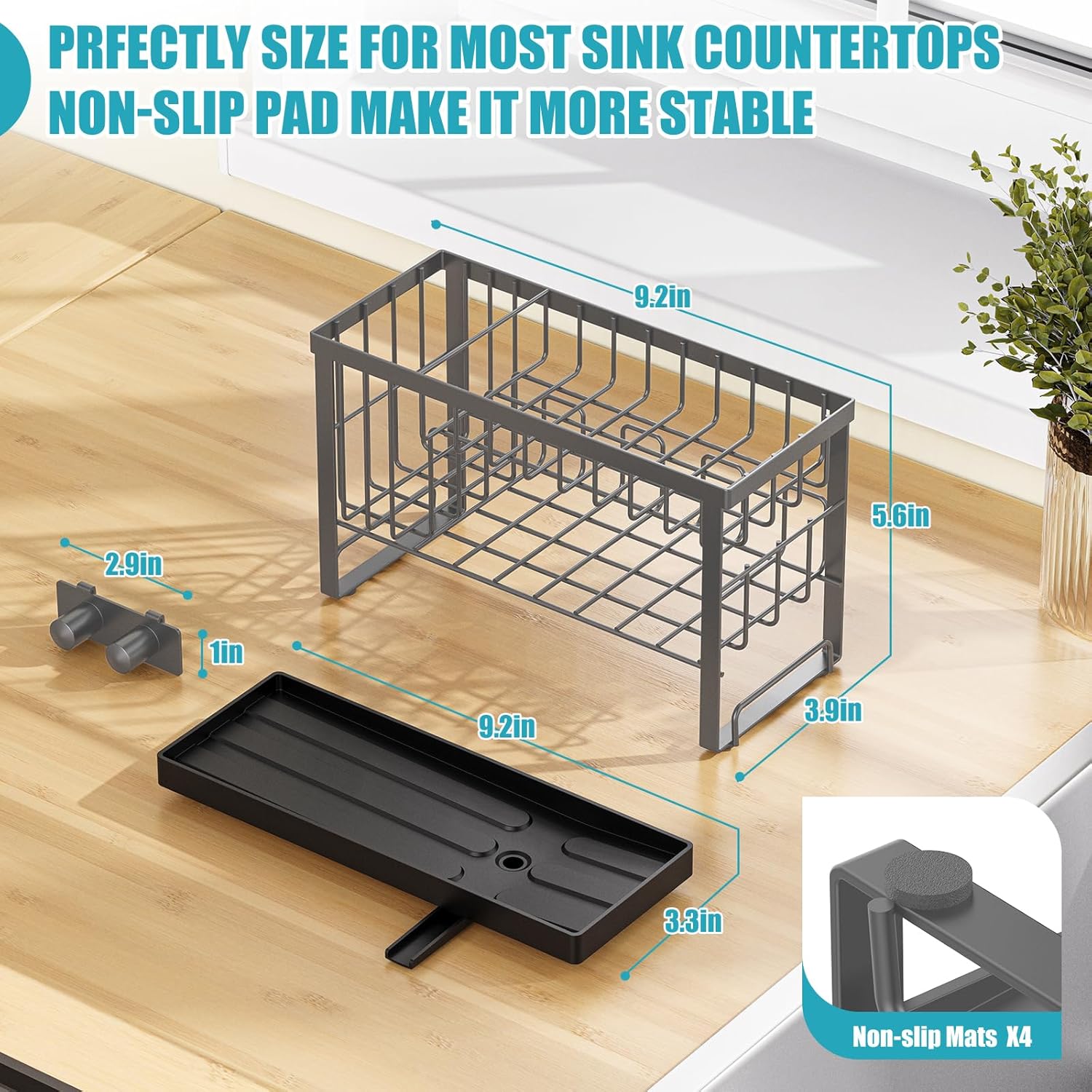 - 4-in-1 STORAGE SPACE:The kitchen sink sponge holder is designed with 4 storage areas.Reasonable divider design,different items correspond to be placed in different areas,make the kitchen look more tidy