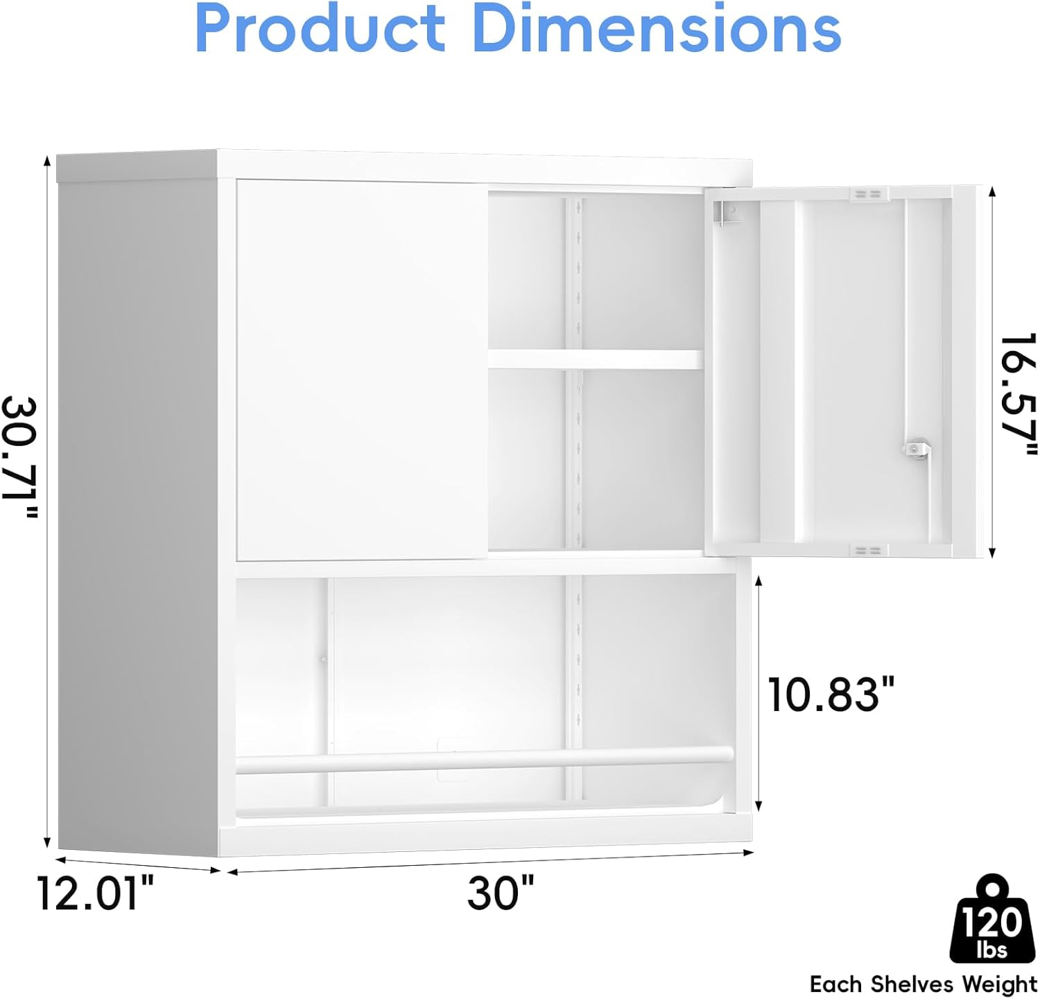 • [Durable and Space-Saving Design] Made from high-quality steel, this wall cabinet is built to last. Its compact design makes it ideal for tight spaces while offering generous storage capacity.