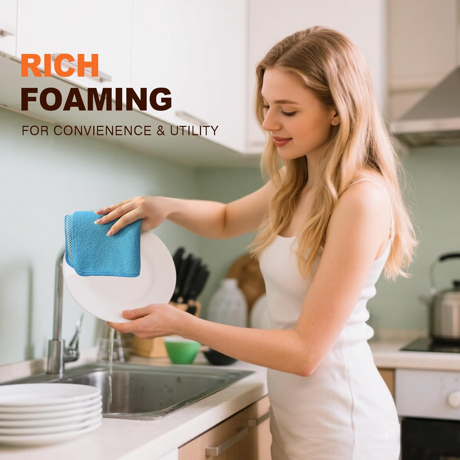 • DISH RAGS FOR KITCHEN CLEANING WITH POLY SCOUR SCRUBBING SIDE: Dish towels one side is microfiber and the other side is mesh. The microfiber side works well at getting finger spots off the stainless steel appliances and the glass front of fridge or stove, microwave; the scrubby side is good for cleaning stuck on food without having to grab your scraper and does not scratch delicate surfaces either