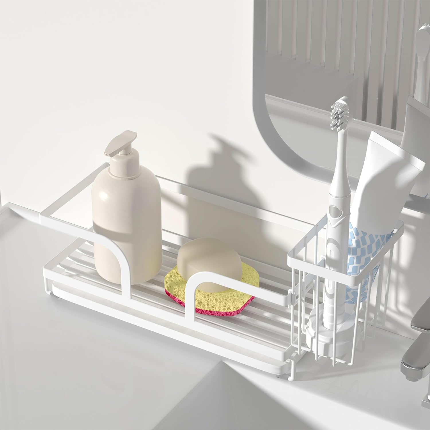 • VERSATILE DESIGN: Kitchen sink caddy organizer with dedicated compartments for sponges, scrubbers, soap dispenser, and other cleaning supplies