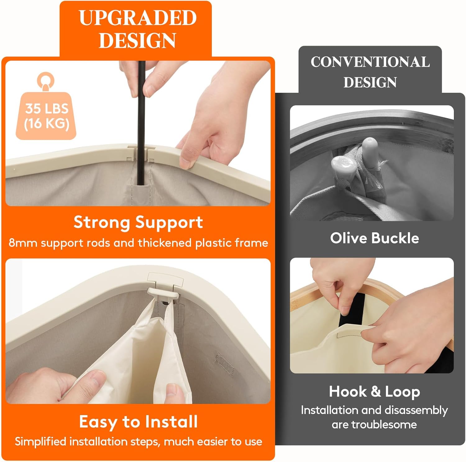 • Sturdy & Stable: Constructed from premium tear-resistant fabric, this hamper includes a plastic frame and four support rods for enhanced stability, supporting up to 16 kg/35 lbs without collapsing or deforming over time