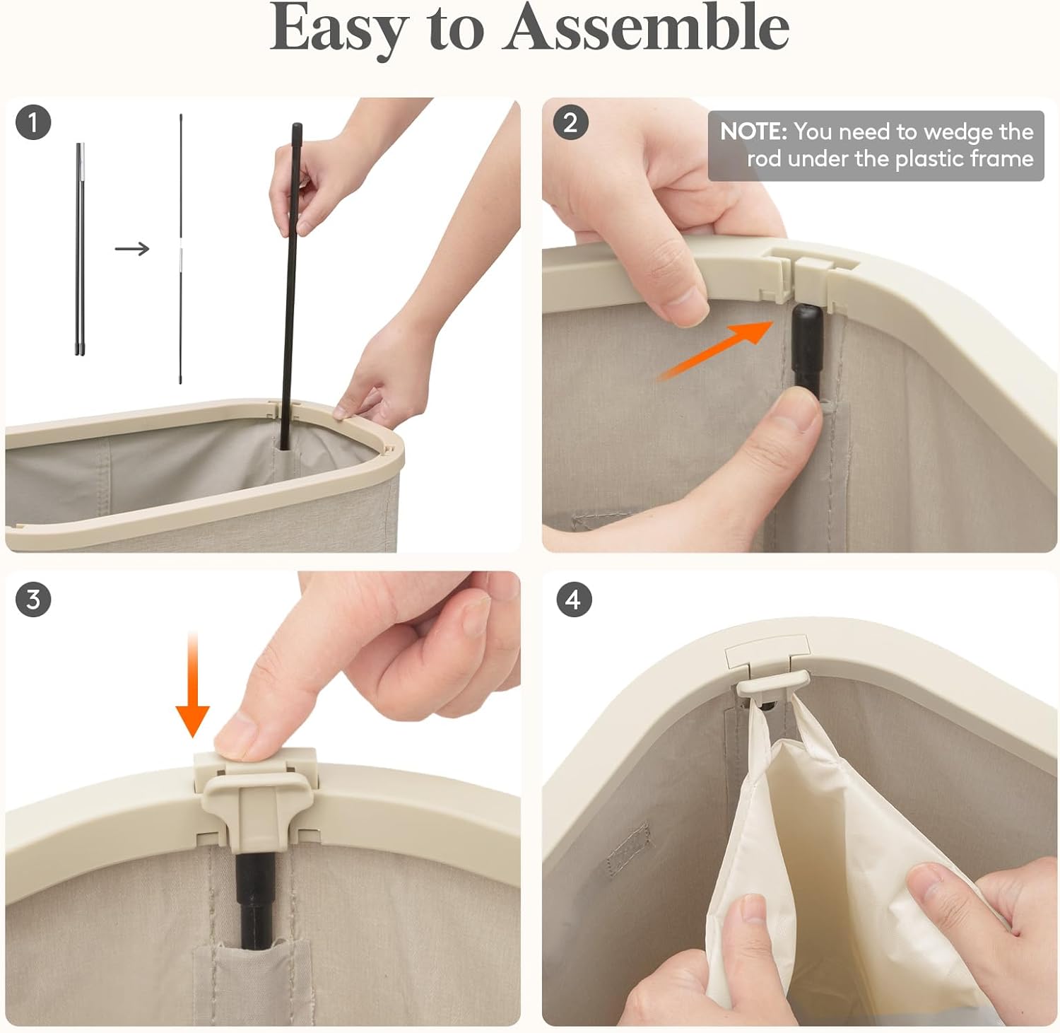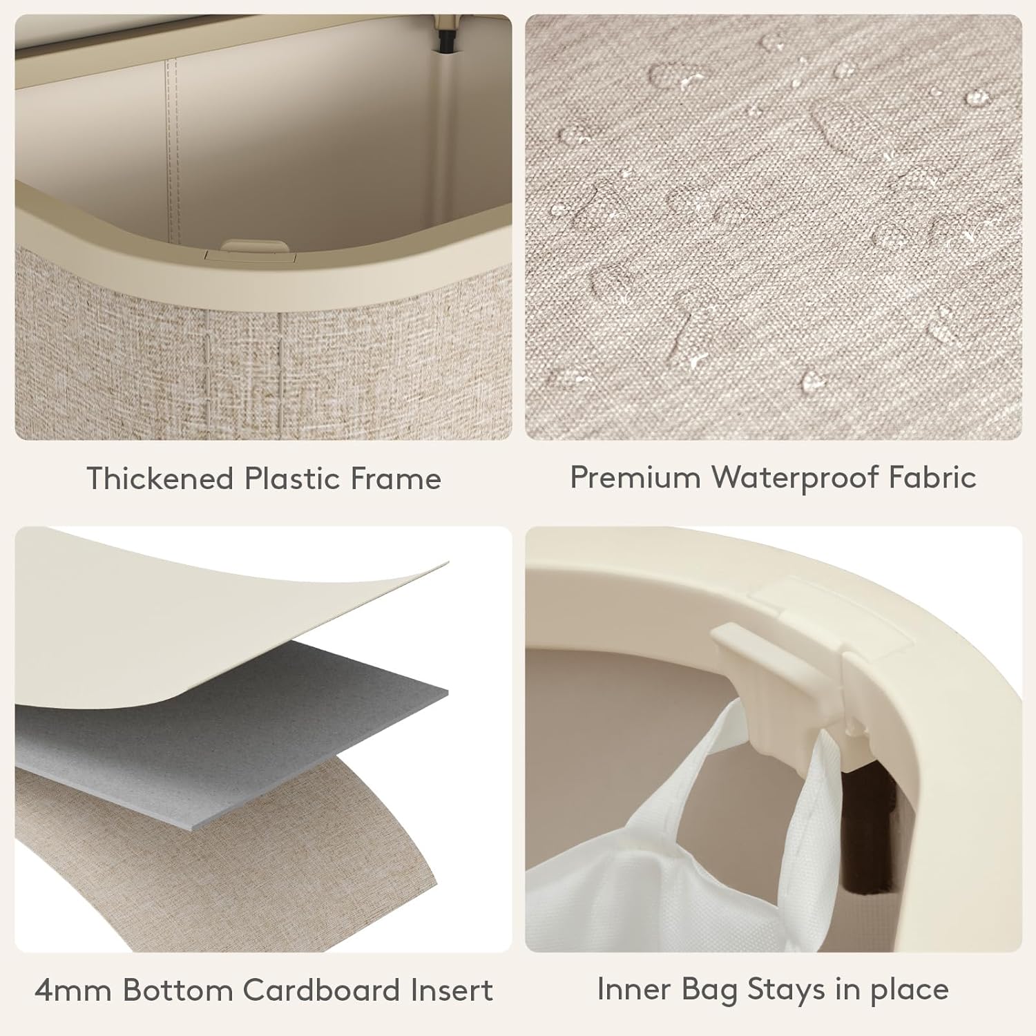 • Sturdy & Stable: Constructed from premium tear-resistant fabric, this hamper includes a plastic frame and four support rods for enhanced stability, supporting up to 16 kg/35 lbs without collapsing or deforming over time