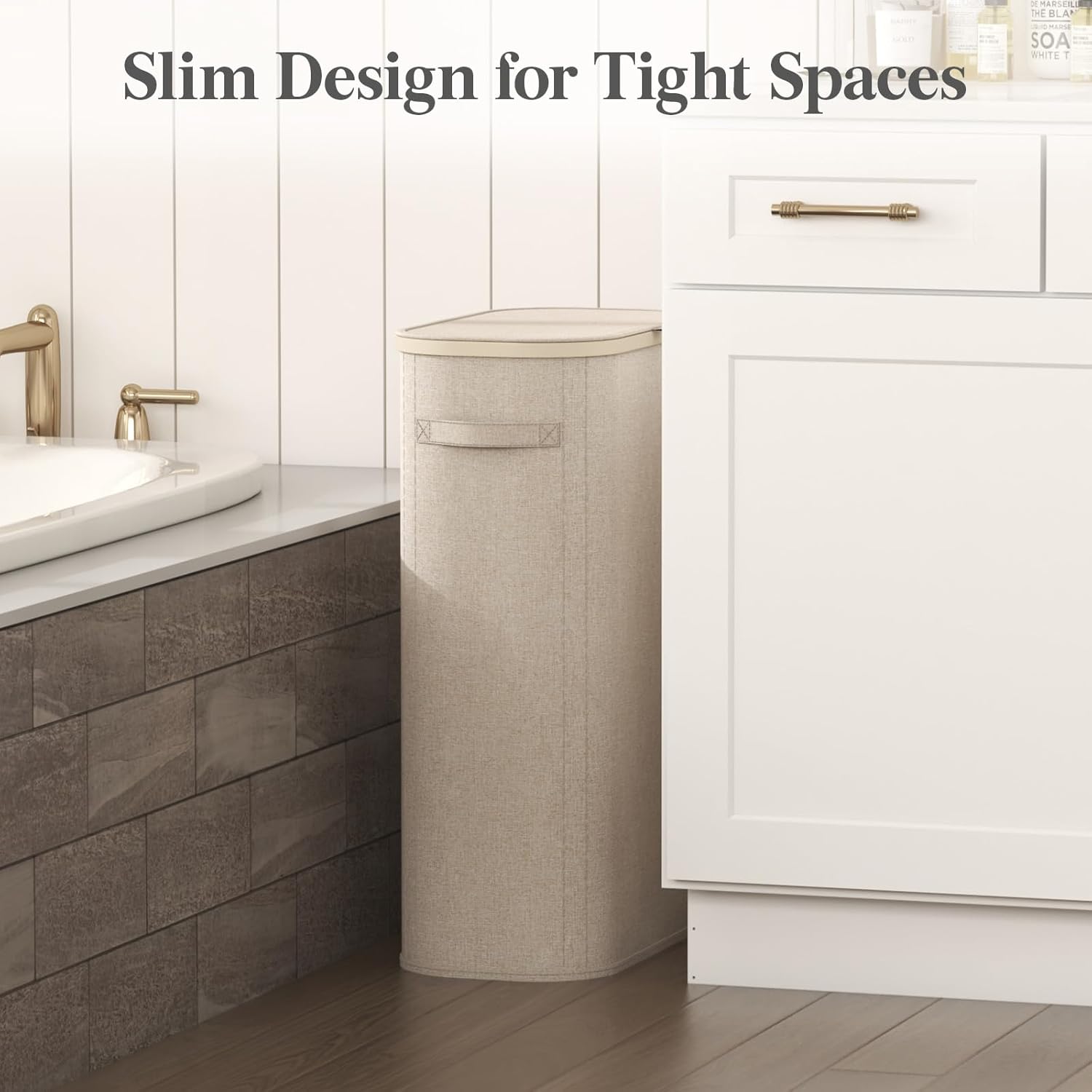 Lifewit 65L Slim Laundry Basket with Lid, Narrow Large Laundry Hamper with Plastic Handles and Removable Bag, Tall Foldable Dirty Clothes Hampers for Laundry Room, Bedroom, Bathroom, Dorm, Beige