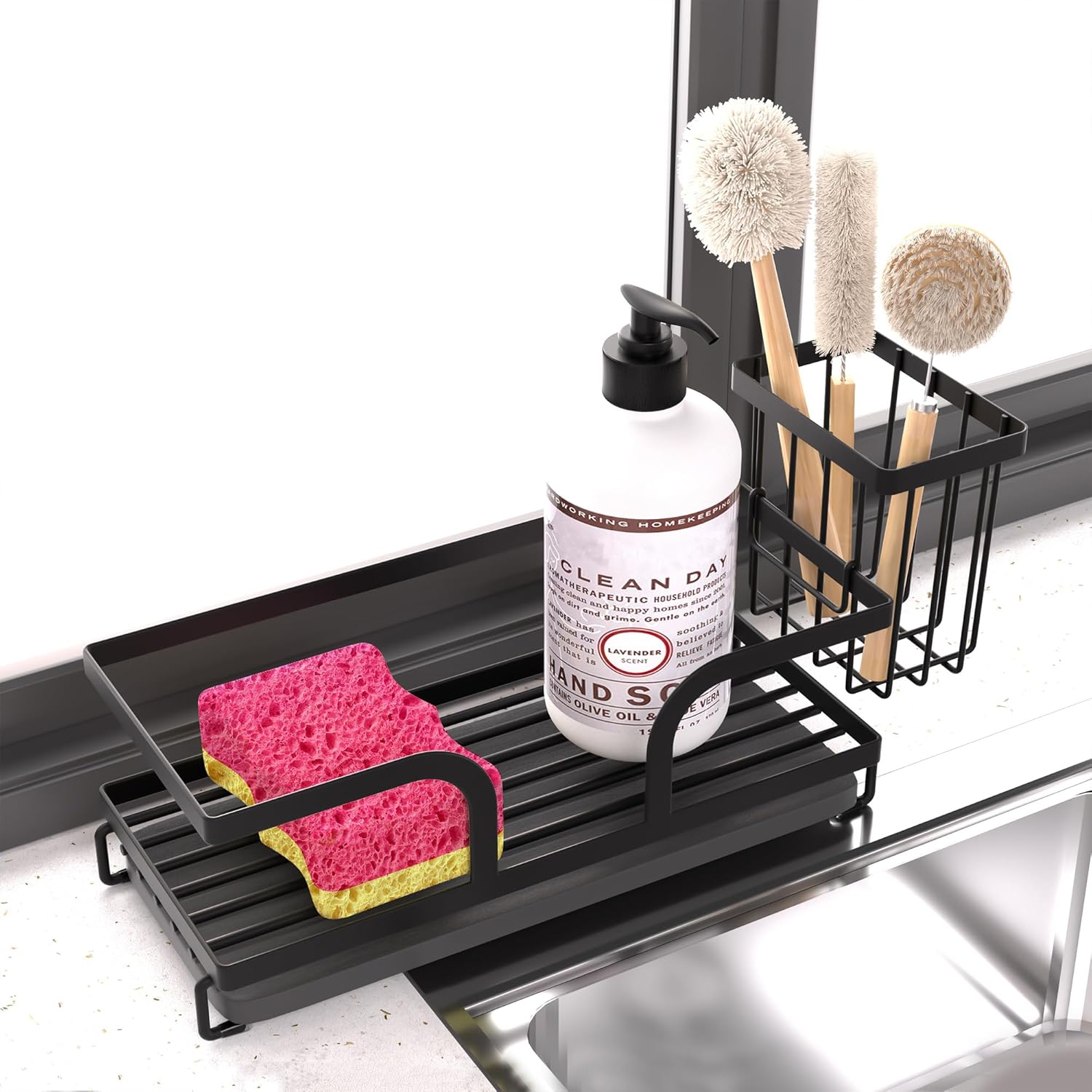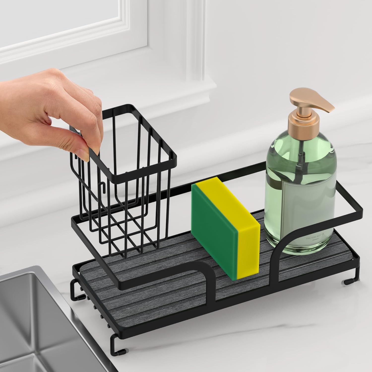 • SPACE-SAVING: Compact countertop organizer keeps cleaning supplies neatly arranged while maximizing your sink space