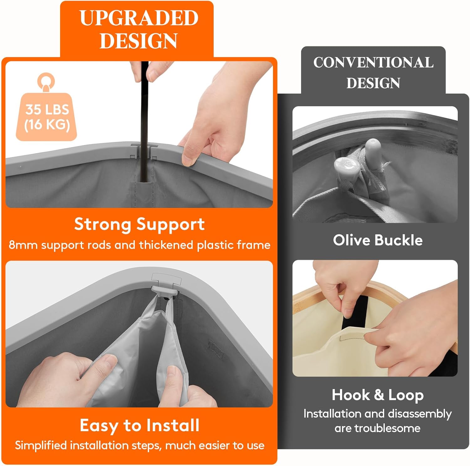 • Super Easy to Install: unfold the bag, insert the support rod, attach the hook, put on the inner bag, and you are ready to go; the upgraded slot design makes installation easier then ever
