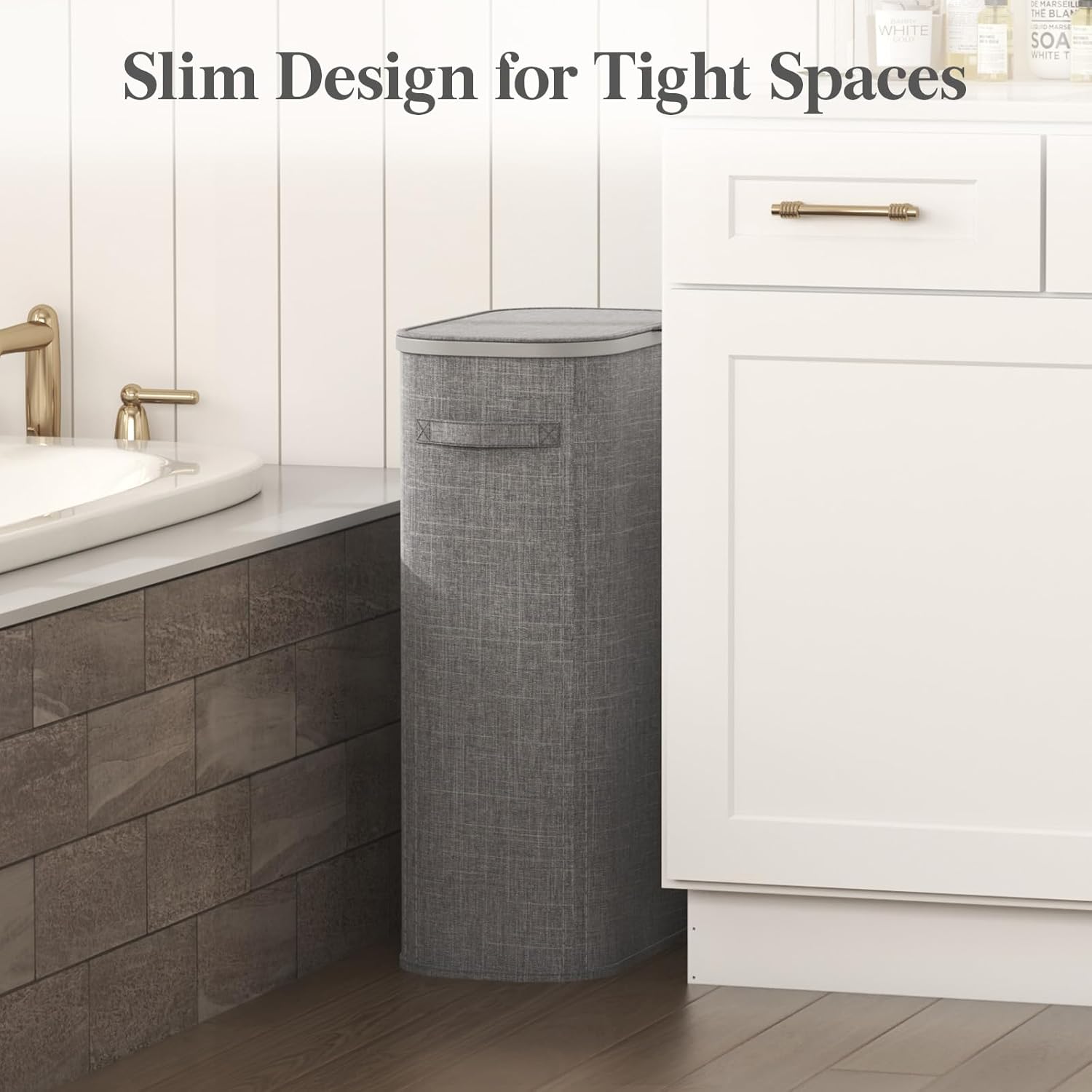 • Perfect for Narrow Spaces: This slim laundry hamper is specifically designed for tight spaces and compact areas; whether it's a narrow bedroom, closet, RV, or a small bathroom,it fits effortlessly, creating more storage; dimensions:16.5 x 9.4 x 25.6 in (42 x 24 x 65 cm)