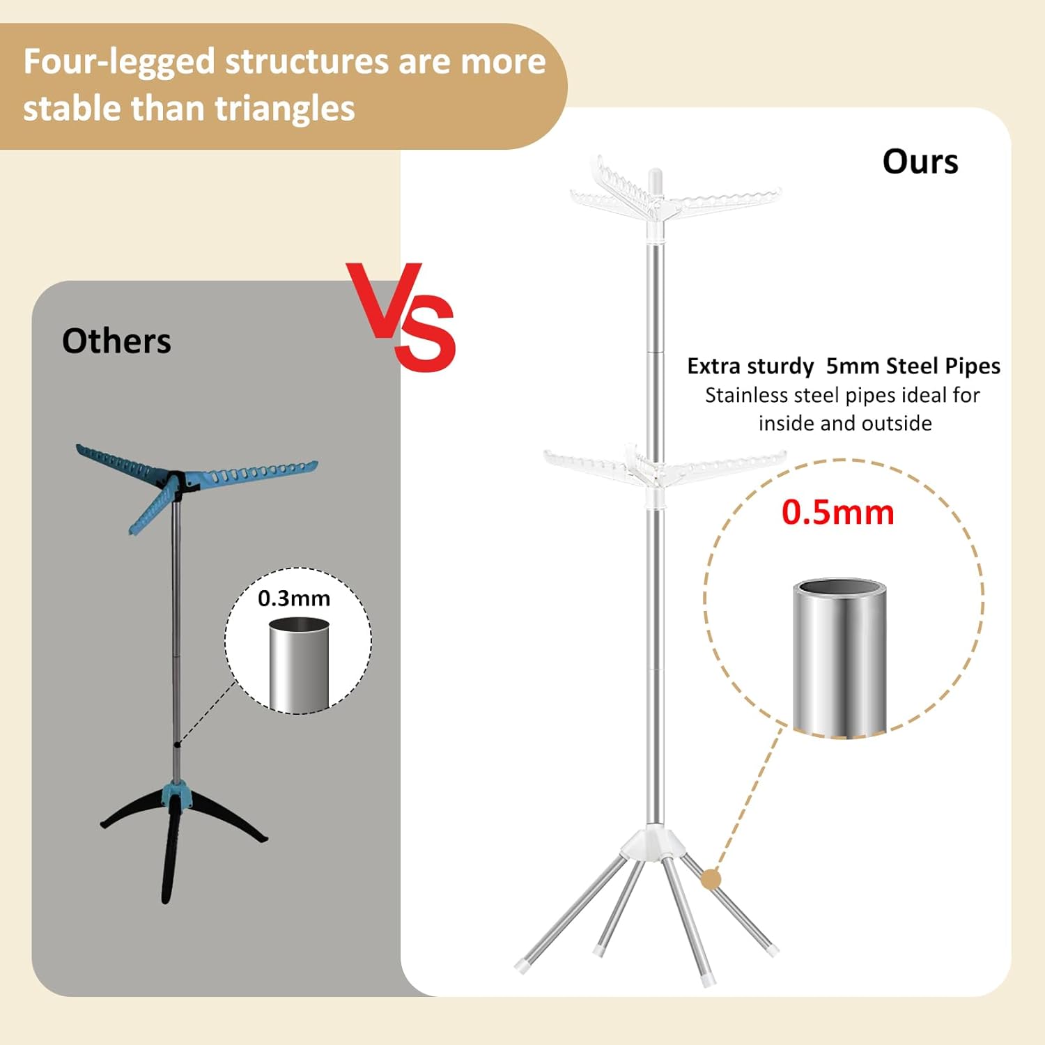 • [Sturdy & Durable Construction] Crafted from premium materials, the 4-leg design offers enhanced stability over traditional 3-leg racks, providing robust support for wet or semi-dry clothes with the promise of long-lasting durability for everyday use.