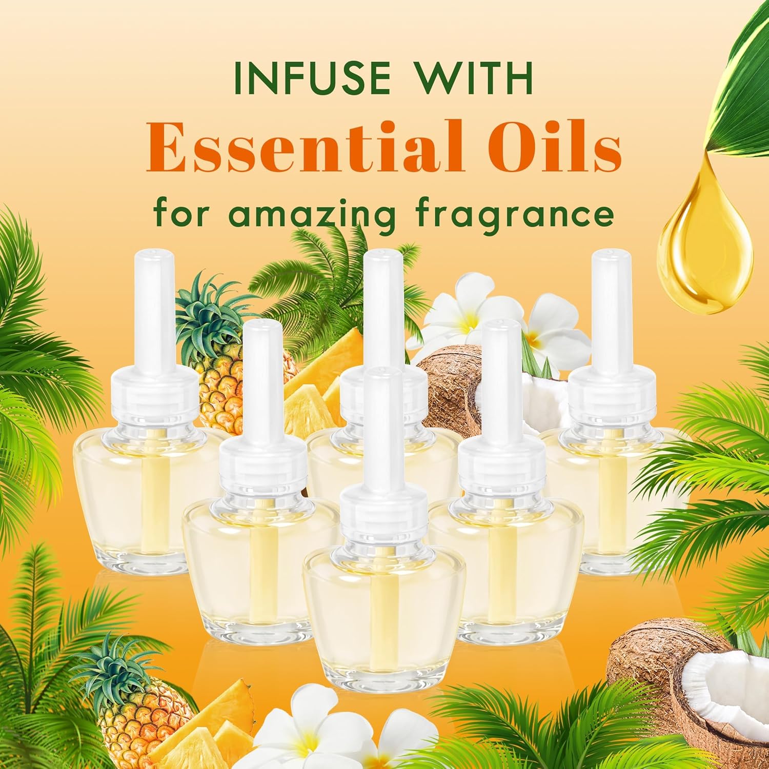• Infused with Essential Oils: Blended with natural essential oils, these refills deliver a clean tropical freshener experience. The ideal wall plug-in air freshener to elevate your room ambiance without being overpowering.