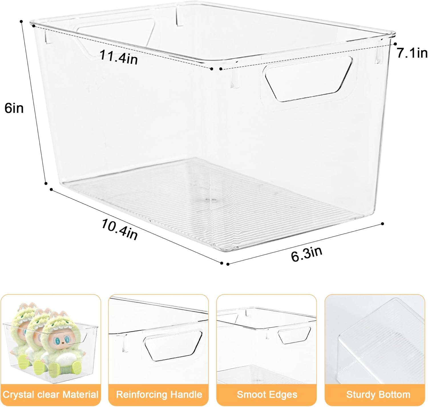 • Multipurpose Organizers:Set of 12 clear storage bins (11.4"L x 7.1"W x 5.9"H) perfect for pantry, fridge, cabinet, or bathroom,Ideal for food, snacks,condiments,bottled beers or office supplies