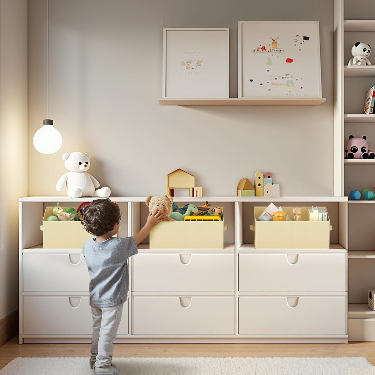 • 【Multipurpose】These closet shelf organizer for organizing towels, winter clothes, toys, magazines, DVDs, office & crafts supplies, etc. these fabric storage bins fits nicely onto shelves, beds, desks in the bathroom, bedroom, or living room