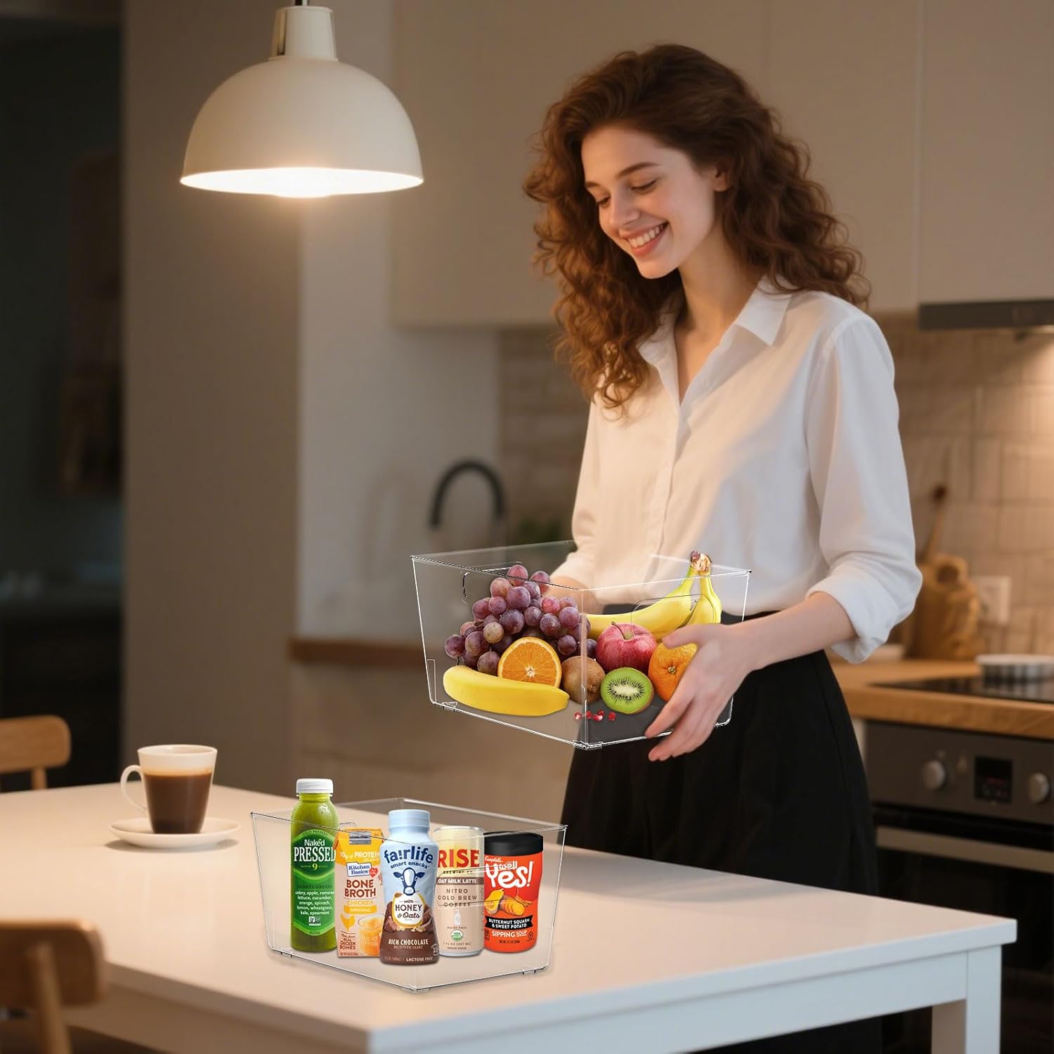 • EASY CLEAN & DURABLE — Smooth PET surfaces wipe or rinse clean quickly. Lightweight yet sturdy, these clear storage bins resist stains and odors with routine care — great for pantry, bathroom, office, and playroom organization.
