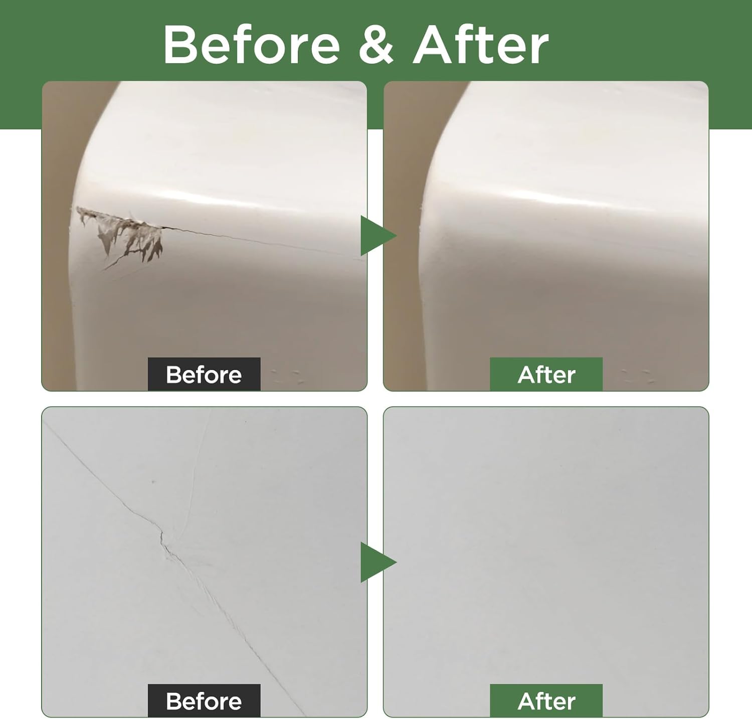 • ✅ Instant Ceramic Repair:Fix chips, cracks, and scratches on ceramic tiles, porcelain sinks, and kitchen cabinets in minutes. The gloss white formula matches standard appliance colors, making it perfect for refrigerators, bathtubs, and backsplashes. No need to replace entire surfaces – just dab, dry, and enjoy like-new results!