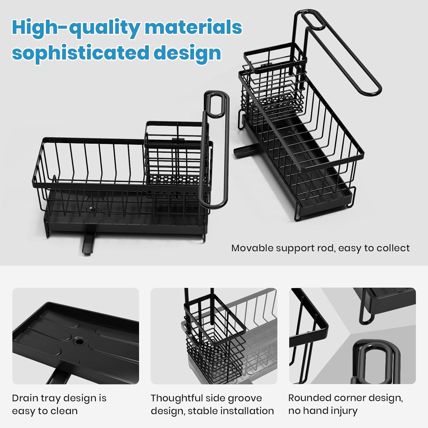 • Kitchen sink caddy organizer durable - The sink caddy kitchen sink organizer is made of high-quality carbon steel, which can effectively prevent rust and defo