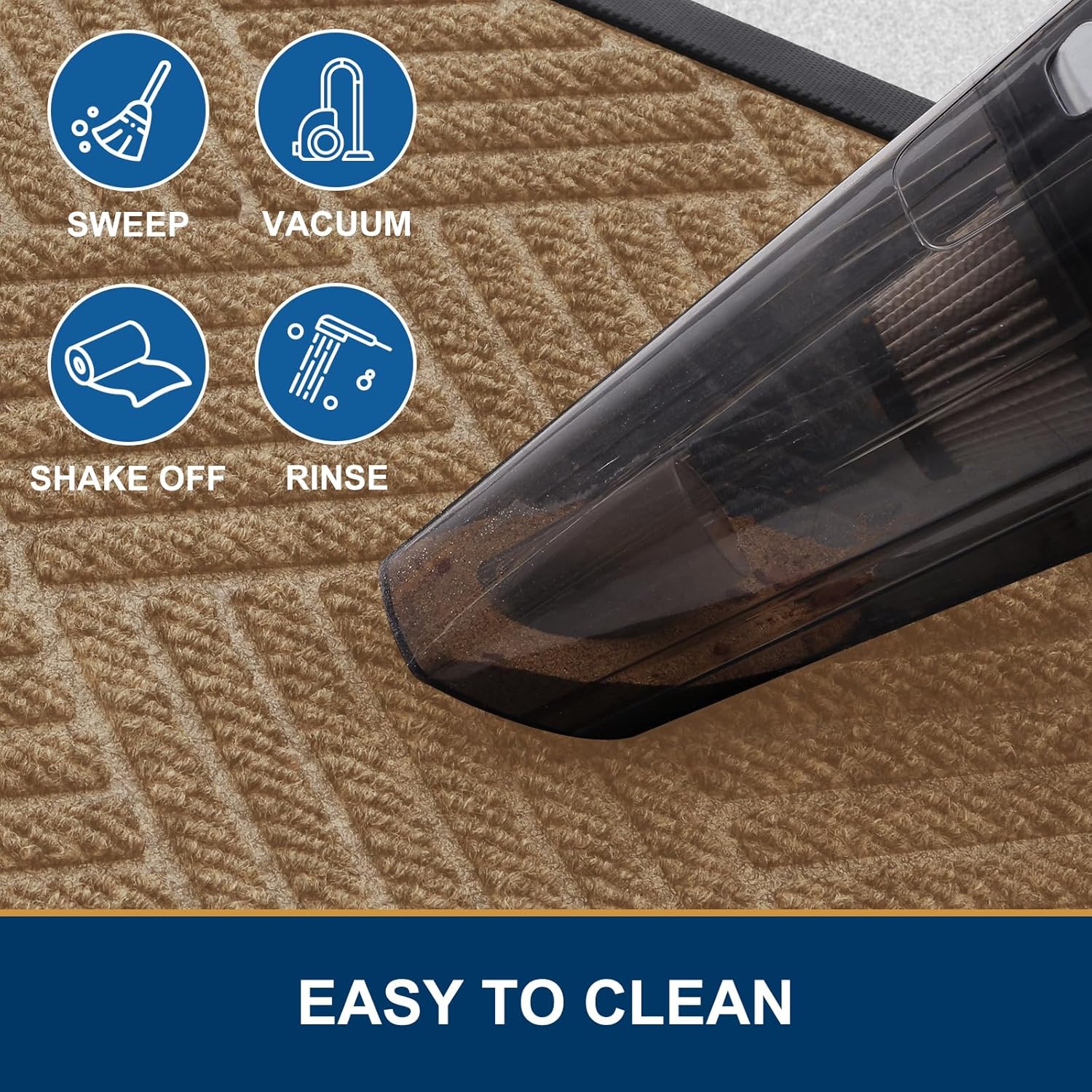 - Capture Dirt and Moisture: The surface of the Smiry door mat is crafted from woven polyester fabric. The deep grooves can effectively trap the dust, gravel, mud, sand and other clutter. The sturdy beveled rubber edge will not accumulate water. Even rainy, snowy or muddy weather will keep your home dry and clean