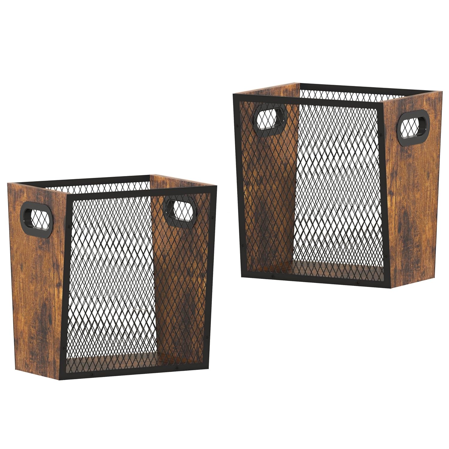 - 【Premium Materials & Stylish, Easy Assembly】Crafted from Hard iron mesh and mdf board, this office trash can blends industrial durability with natural warmth. Its sturdy frame ensures stable structure, while the retro-modern design adds decorative flair to your space.