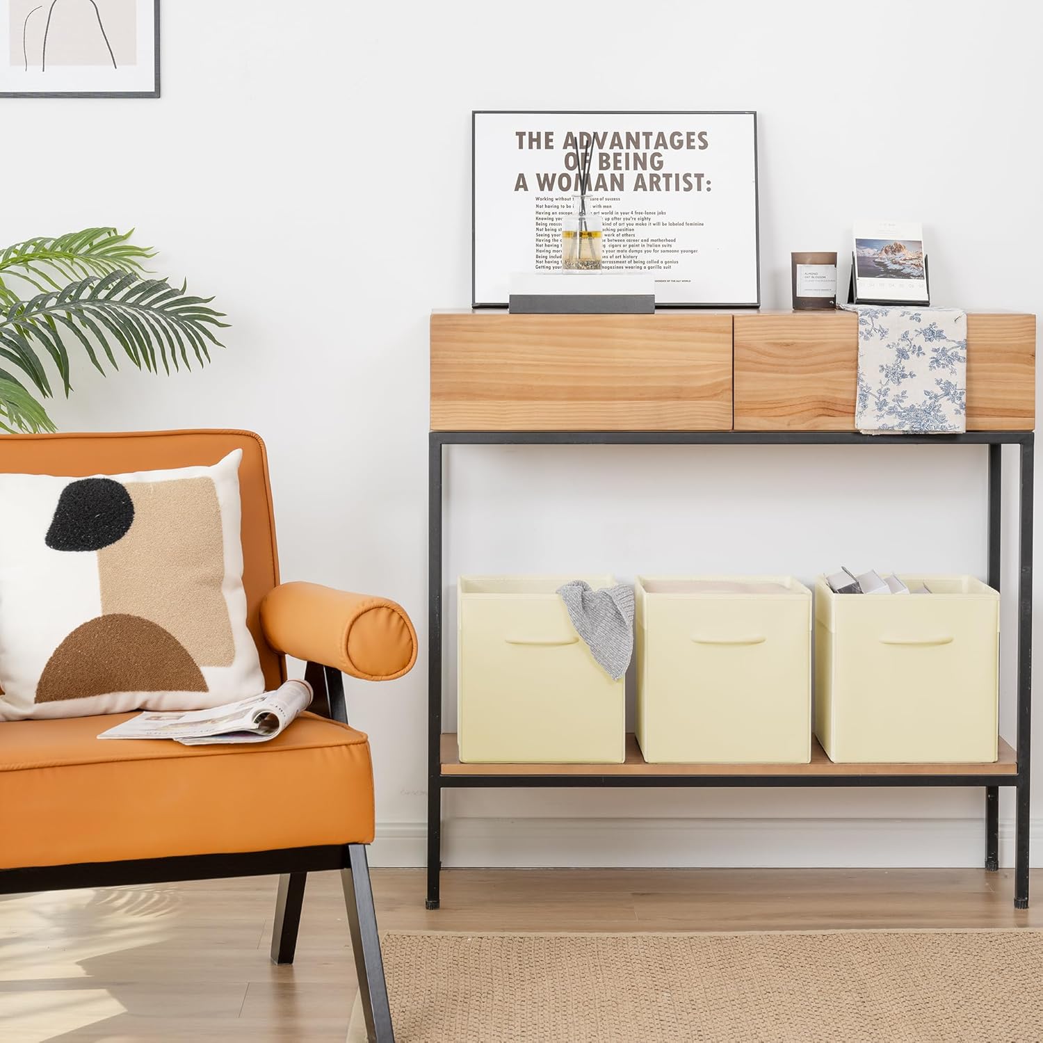 StorageWorks Beige Storage Cubes, 11 Inch Cube Storage Bins with Handle, Cube Storage Organizer Bins for Shelves and Closet, Collapsible Storage Bins, 4-Pack