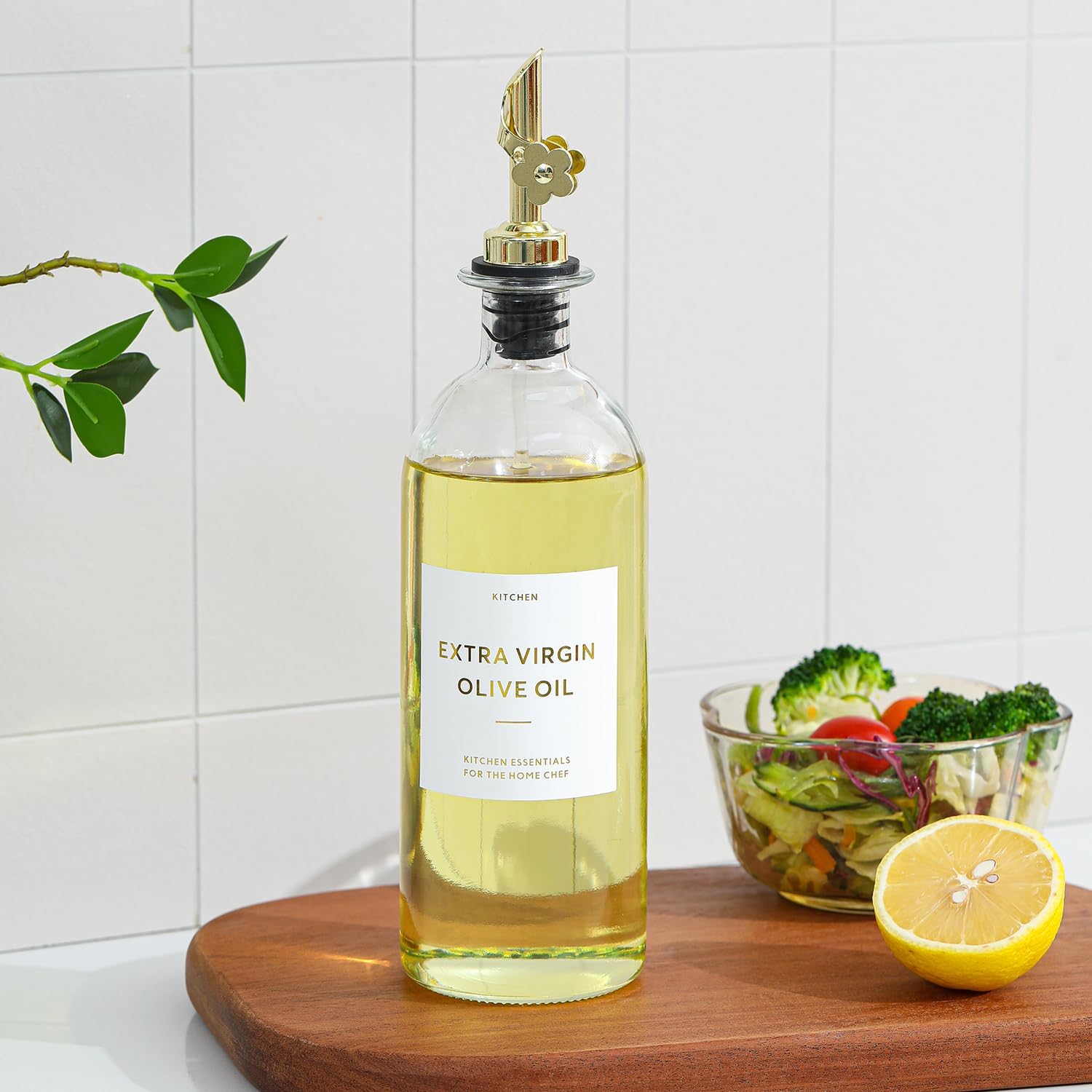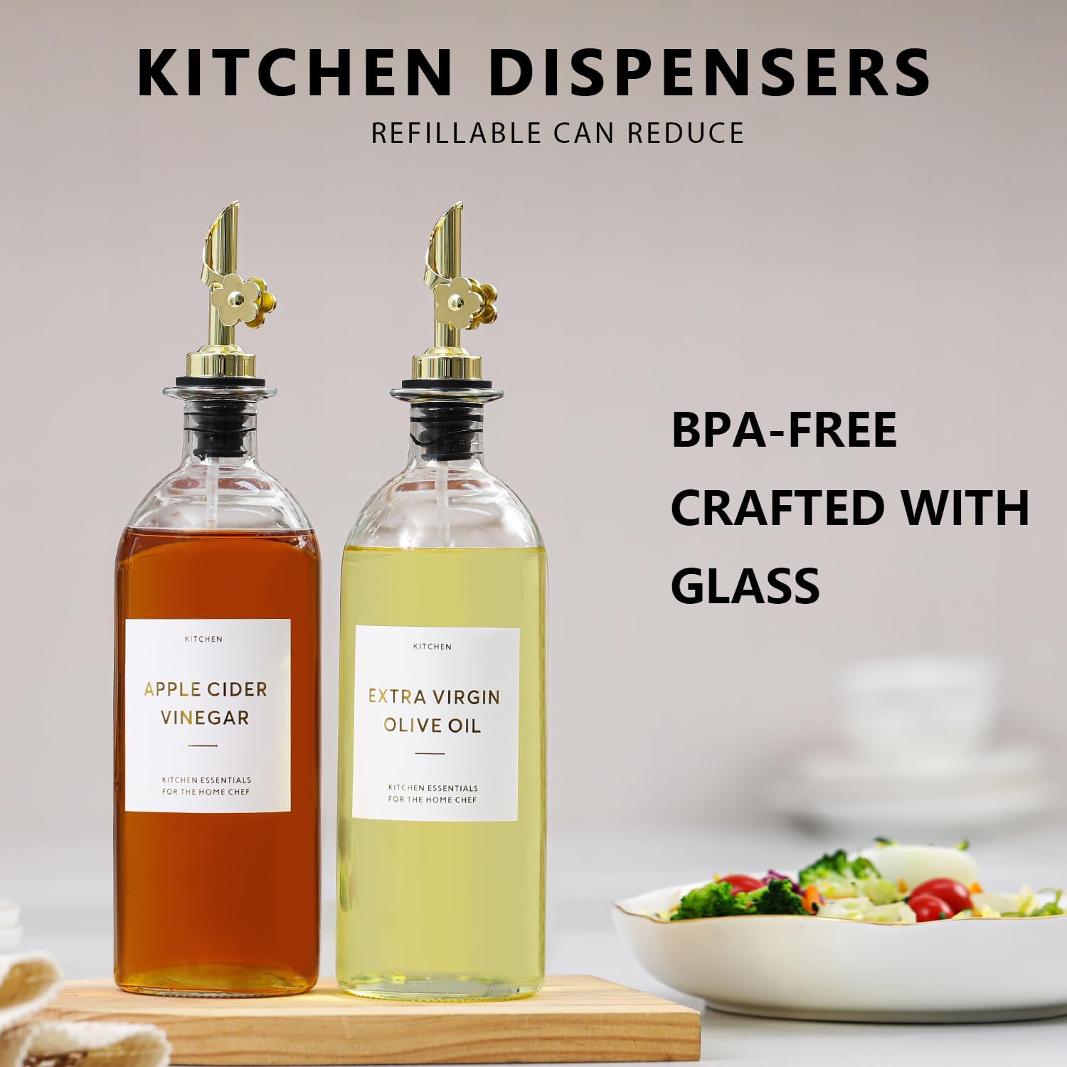 • ELEVATE YOUR SPACE & KITCHEN ORGANIZED - Transform your kitchen with this elegant and space-saving glass oil bottles, The minimalist design not only adds a touch of luxury but also keeps your kitchen organized, Suitable for any home decor—from modern and luxury to farmhouse or minimalist, the kitchen decor upgrade your home.