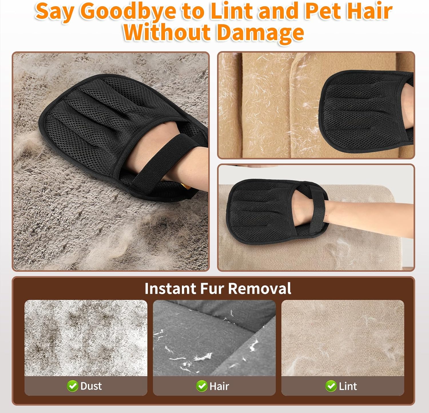 • 【Reusable & Easy to Clean】Pet hair removal glove are washable and reusable, offering a sustainable alternative to wasteful sticky papers and lint rollers! Save money while reducing environmental impact. Cleaning is simple – just shake off debris or rinse under water for repeated use.